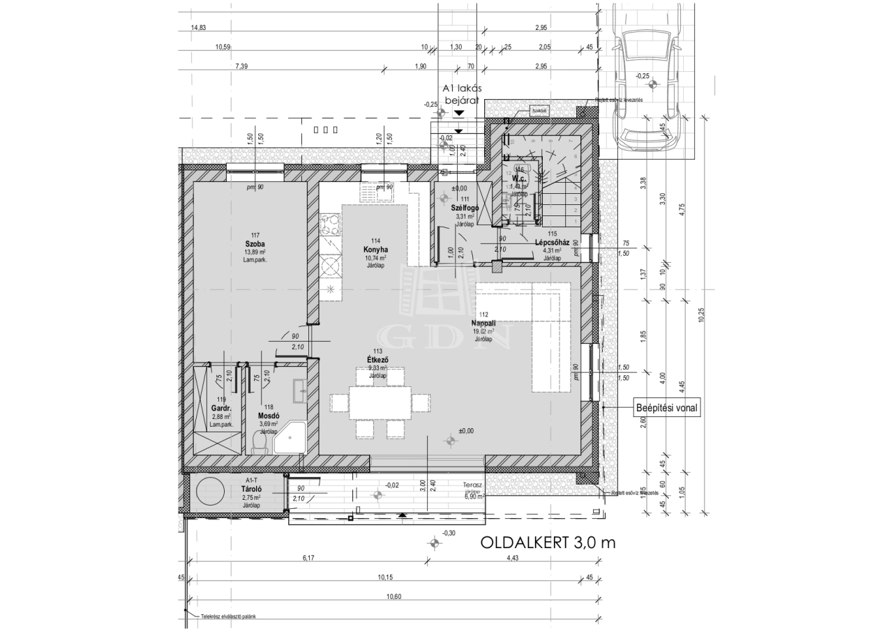 | 121 m2Alapterület | 4 + 1 Szoba |