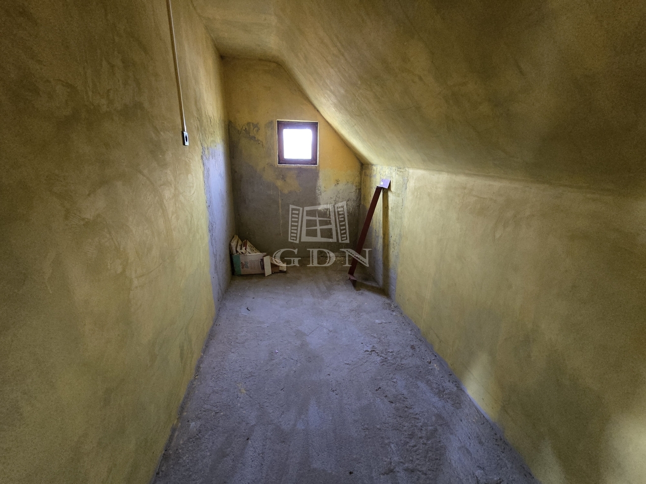 Emelet (63 m² + 5,5 m² terasz): három szoba, közlekedő, és egy külön helyiség, amelyből fürdőszoba is kialakítható. A belmagasság itt 2,6 méter.
