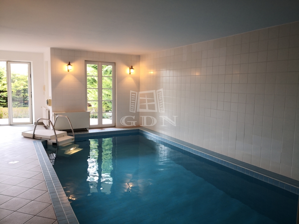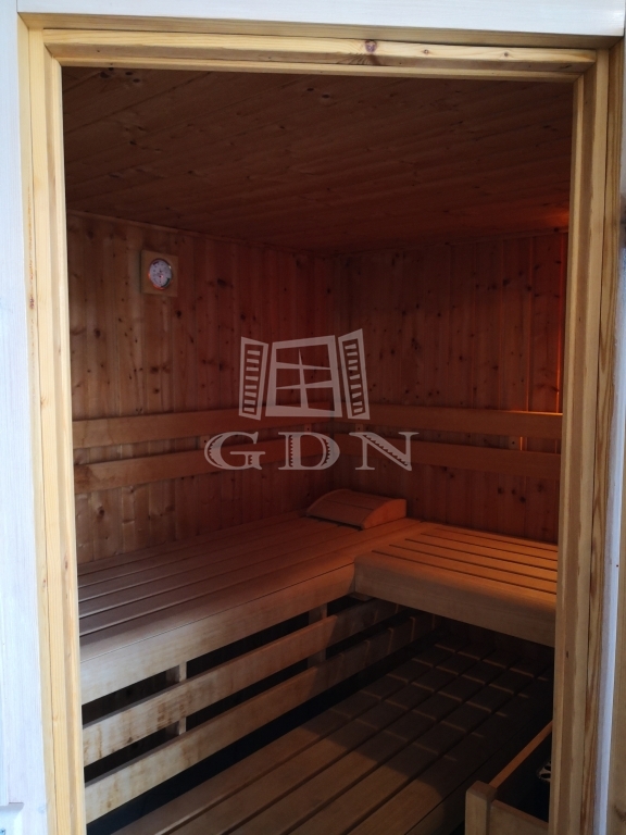 A legalsó szinten kapott helyet a kertkapcsolatos beltéri úszómedence, fűtéssel, ellenáramoltatóval és víz alatti világítással, valamint szauna, zuhanyzó, WC-kézmosó, háztartási helyiség, dupla garázs, kamra, terasz található itt.