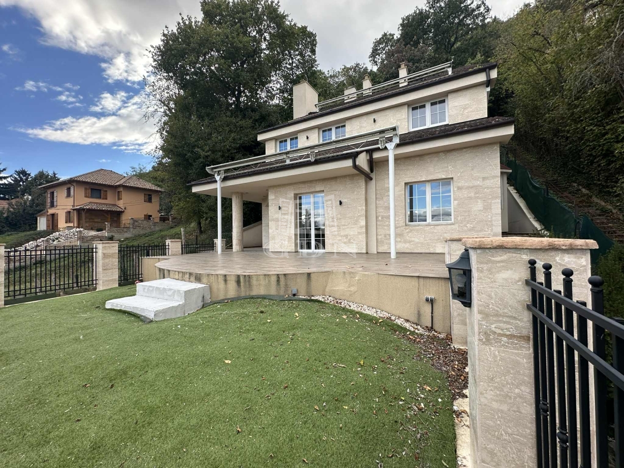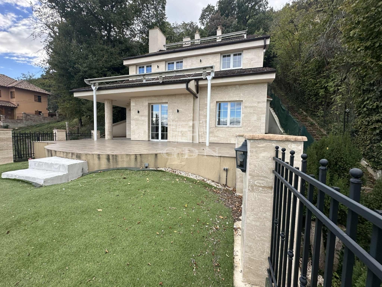 A II. kerület csendes, zöldövezeti részén, az Előd vezér útján eladó egy 380 m²-es, modern kialakítású, panorámás luxus családi ház, 1100 m²-es parkosított telken.