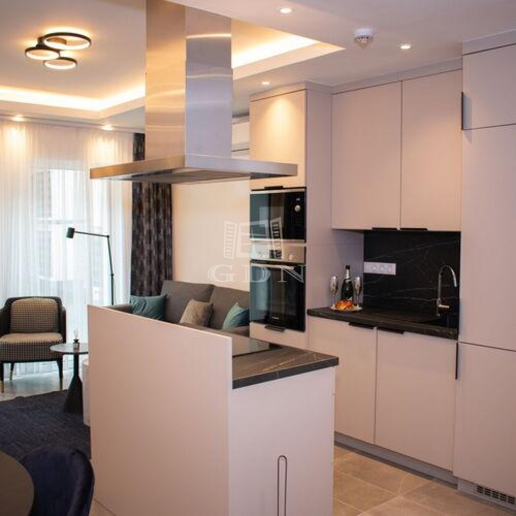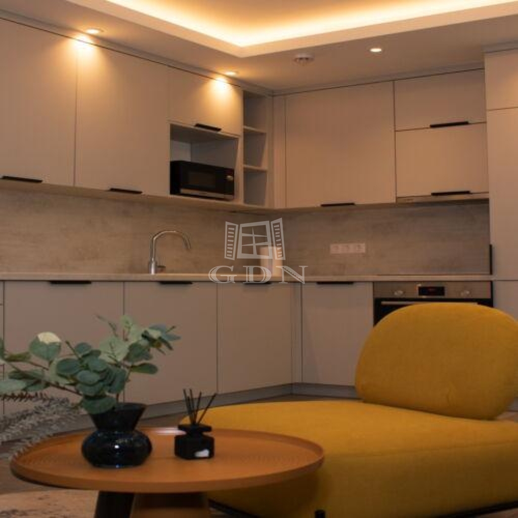 Az első lakóegység: ~32 nm alapterületű, dupla tájolású ingatlan. Hálószobája belső udvarra néz, konyhával, étkezővel kialakított nappalija utcafrontos. A lakórész zuhanyzója tágas, a wc elkülönítve került kialakításra. Egyedi enteriőrrel és bútorzattal lett rendelkezik, minden részlet a leendő tulaj kényelméhez lett kialakítva.