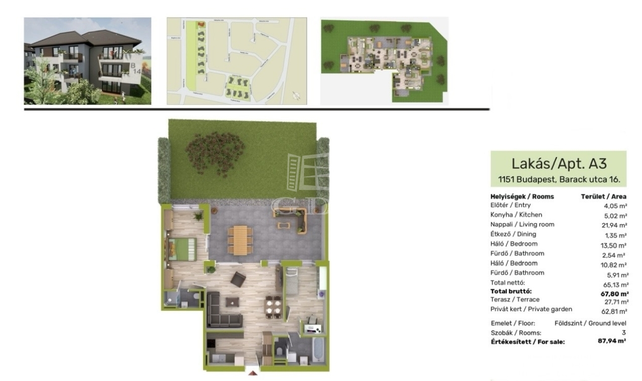• 3 szobás elrendezés(nappali + 2 háló), ideális családoknak