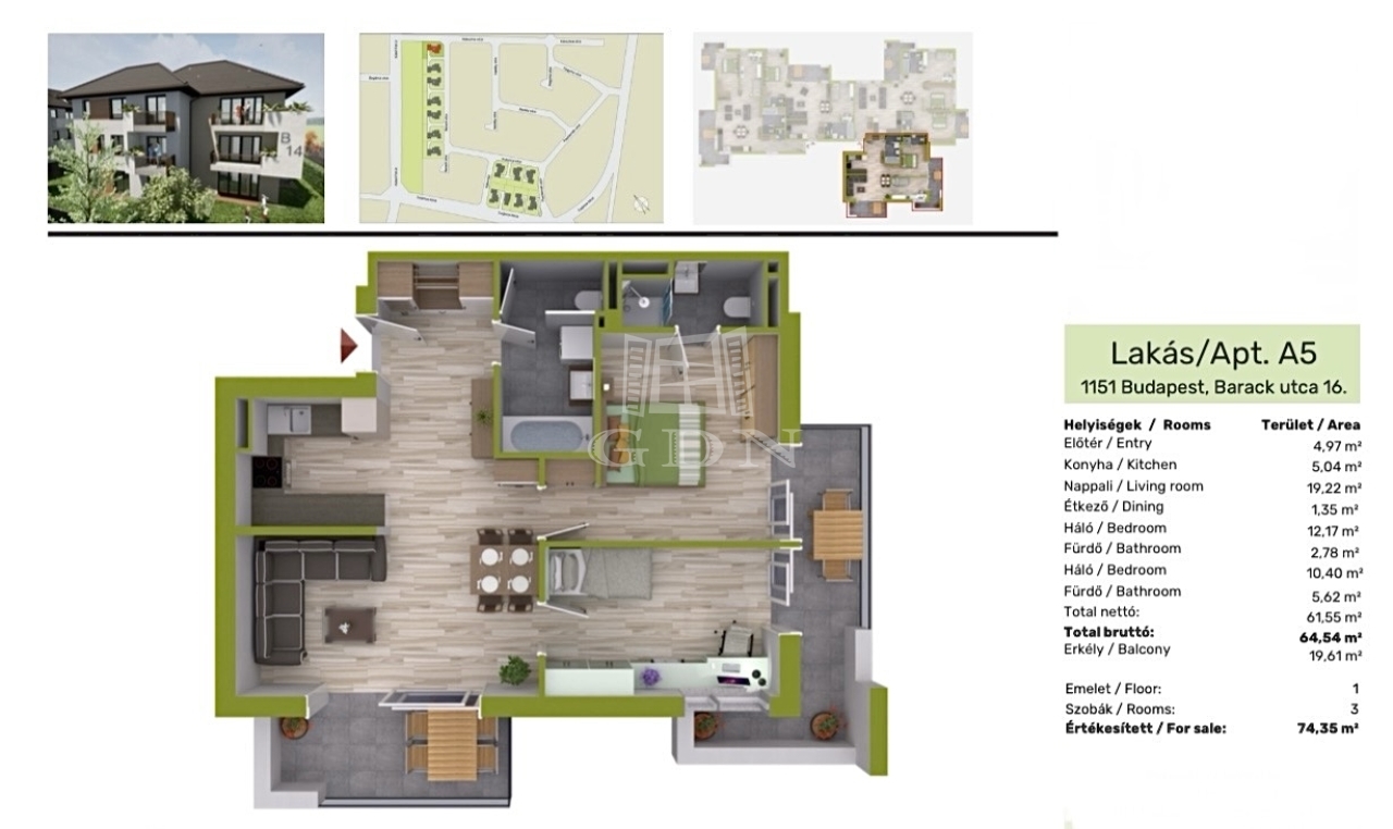 • 3 szobás elrendezés(nappali + 2 háló), ideális családoknak