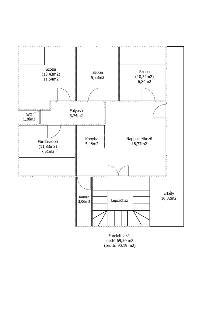 69 m2Alapterület 2 + 2 Szoba
