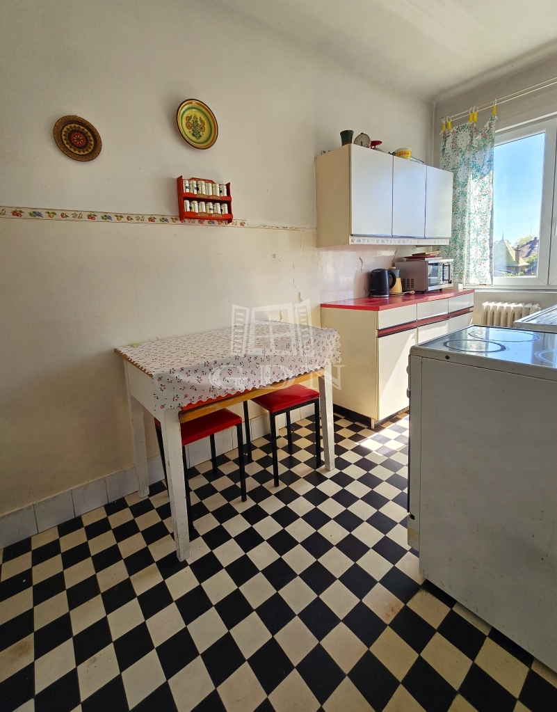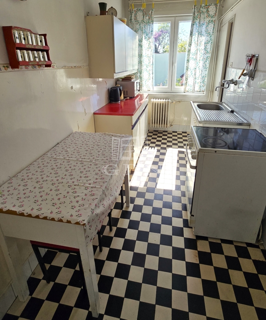 Az ingatlan egy téglaépítésű 4 lakásos ház első emeletén helyezkedik el. A lakás két szobával rendelkezik, melyek az utcára néznek, a konyha pedig egy nyugodt hátsó udvarra. A fűtésről gáz cirkó gondoskodik, a melegvizet pedig egy 80 literes bojler adja. A szobákban régi típusú fa nyílászárók vannak, a konyhában és a fürdőszobában már műanyagok.