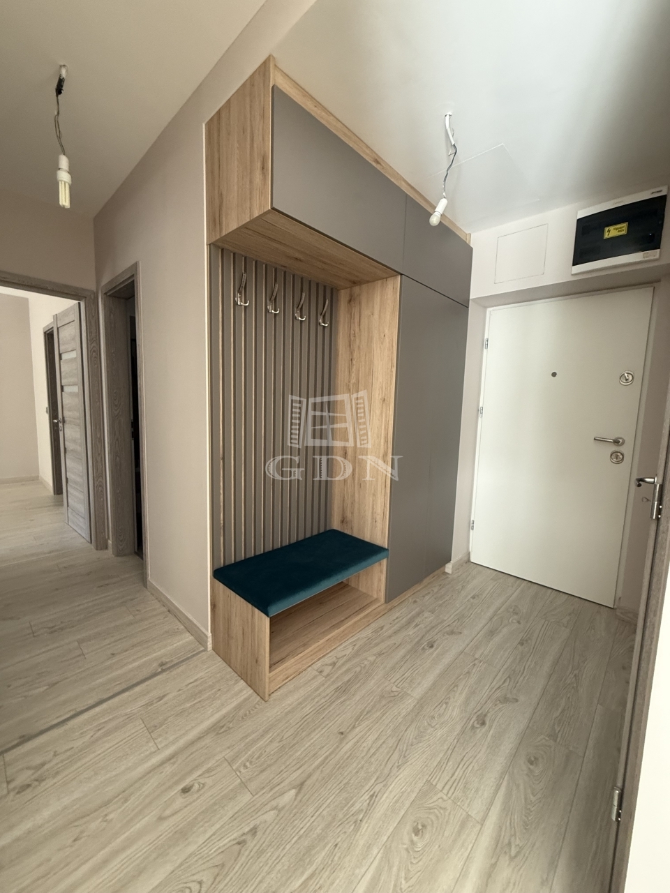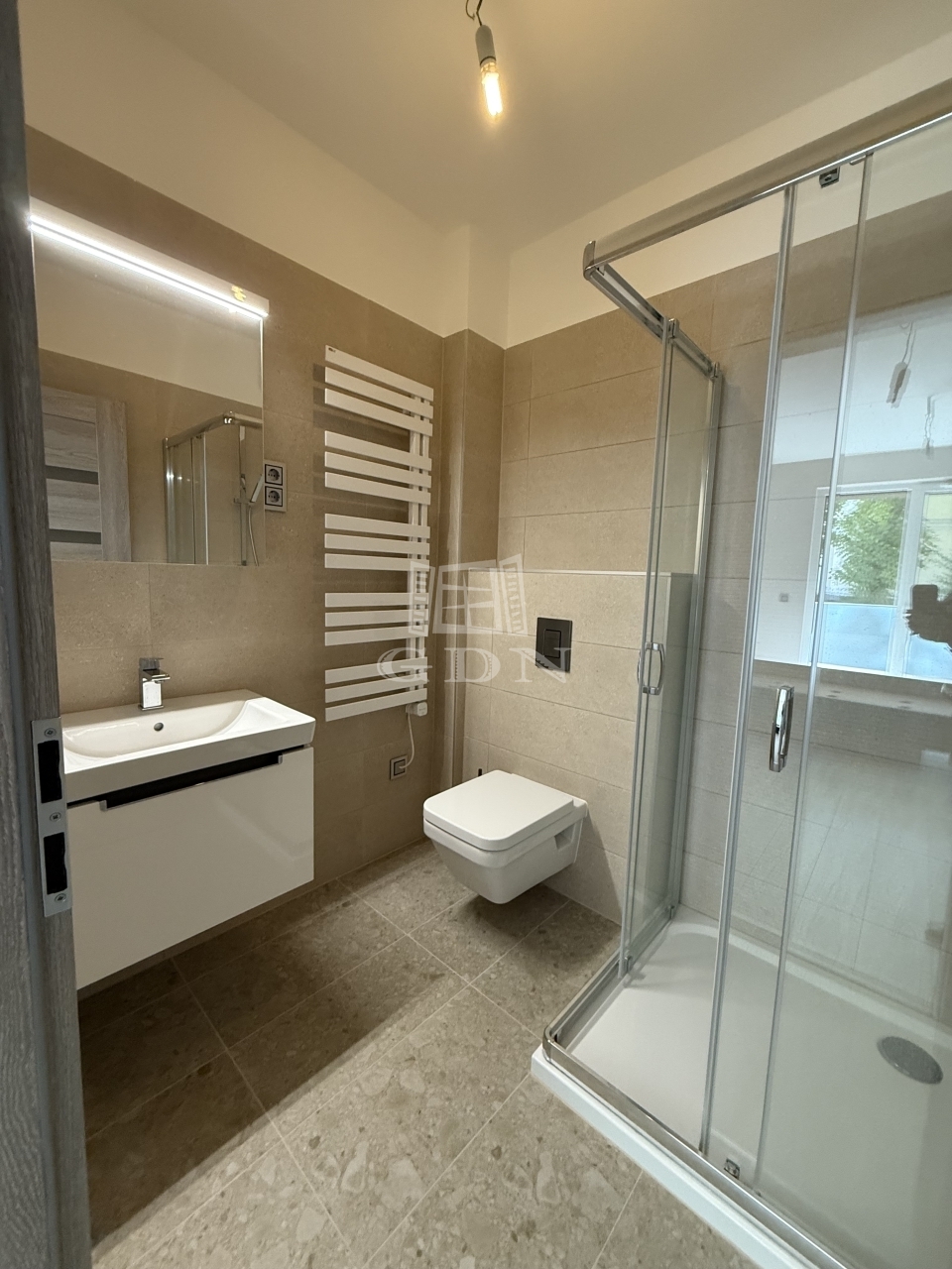 A 75 m²-es, világos lakás két hálószobát, két fürdőszobát és egy tágas, amerikai konyhás nappalit kínál – ideális mindennapi élethez és vendégfogadáshoz.