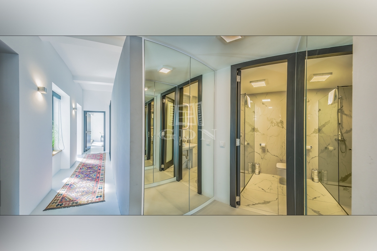 • Elosztás: előszoba, egybenyitott konyha-étkező-nappali, hálószoba, hálófülke, 2 fürdőszoba, gardróbszoba