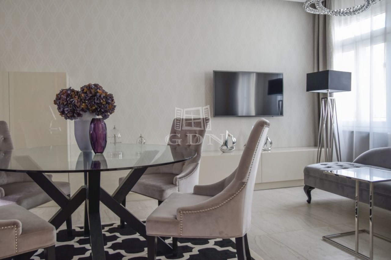 A lakótérben bruttó 92m2-en, nappali, két hálószoba, egy magas minőségben felszerelt, részben szeparált konyha és két fürdőszoba található. Az egyedi készítésű design bútorok, kristály csillárok, a vételár részét képezi. A 77m2-es tetőterasz, szaunával, jakuzzival és lenyűgöző panorámával az Operára, Bazilikára, Citadellára, tökéletes helyszín vendégek fogadásához, pihenéshez, romantikus estékhez. Pár perc sétára megtalálható az Andrássy út, továbbá számos étterem kávézó.