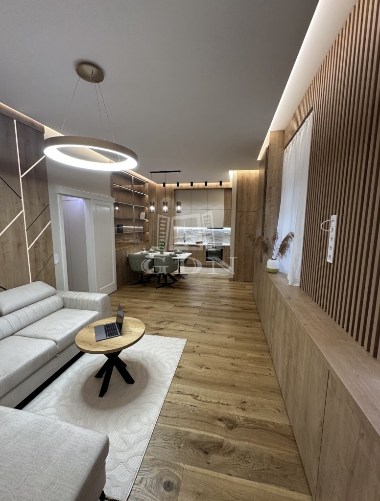 A lakás atmoszféráját a letisztult design, az időtálló anyaghasználat és az elegánsan összehangolt enteriőr emeli ki a kínálatból.