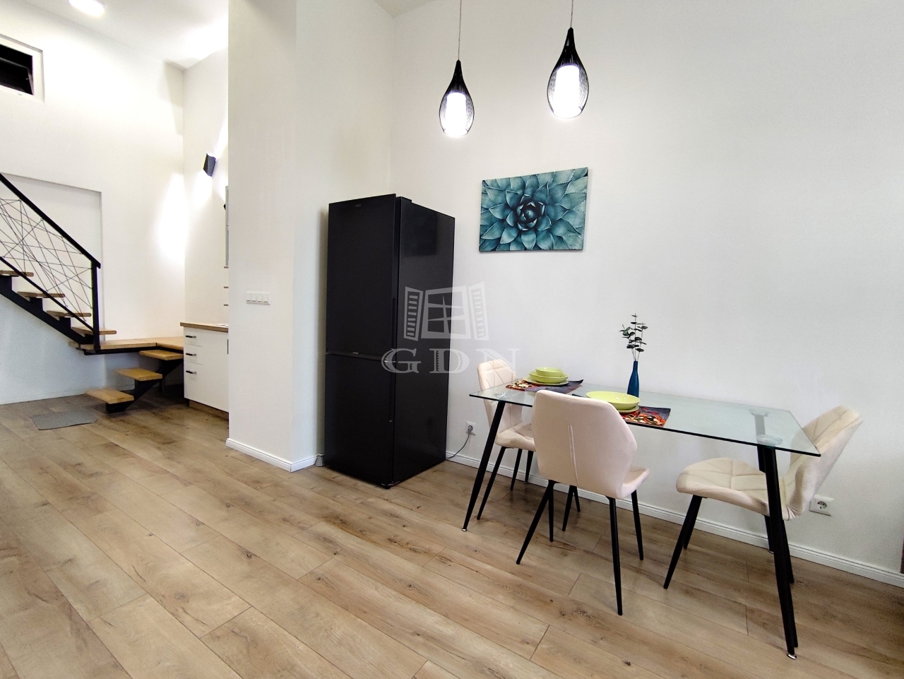 A VII. kerület kedvelt részén, a Dob utca és az Erzsébet körút közvetlen közelében kiadó egy másfél szobás, belső kétszintes, klímás lakás, amely ideális választás egyedülállóknak vagy pároknak.