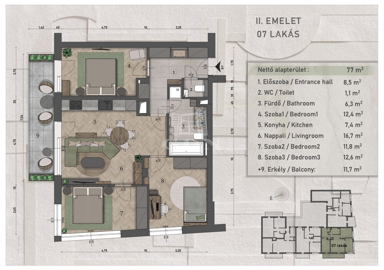 77 m2Alapterület 4 Szoba