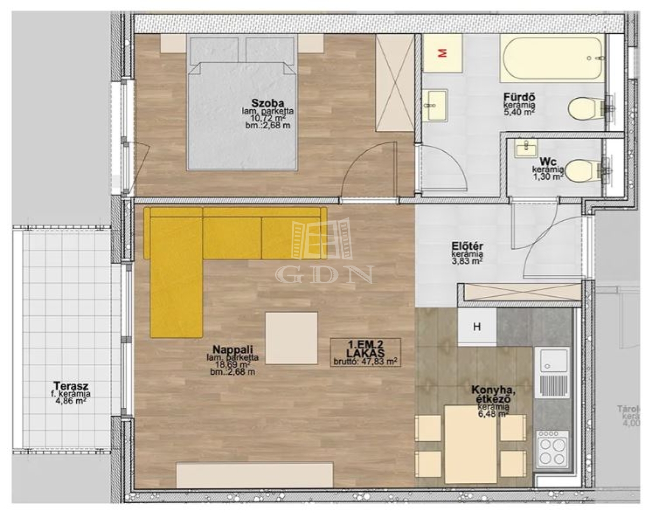 1. emelet – 47 m2 - 2 szoba – 5 m2 erkély – ELÉRHETŐ