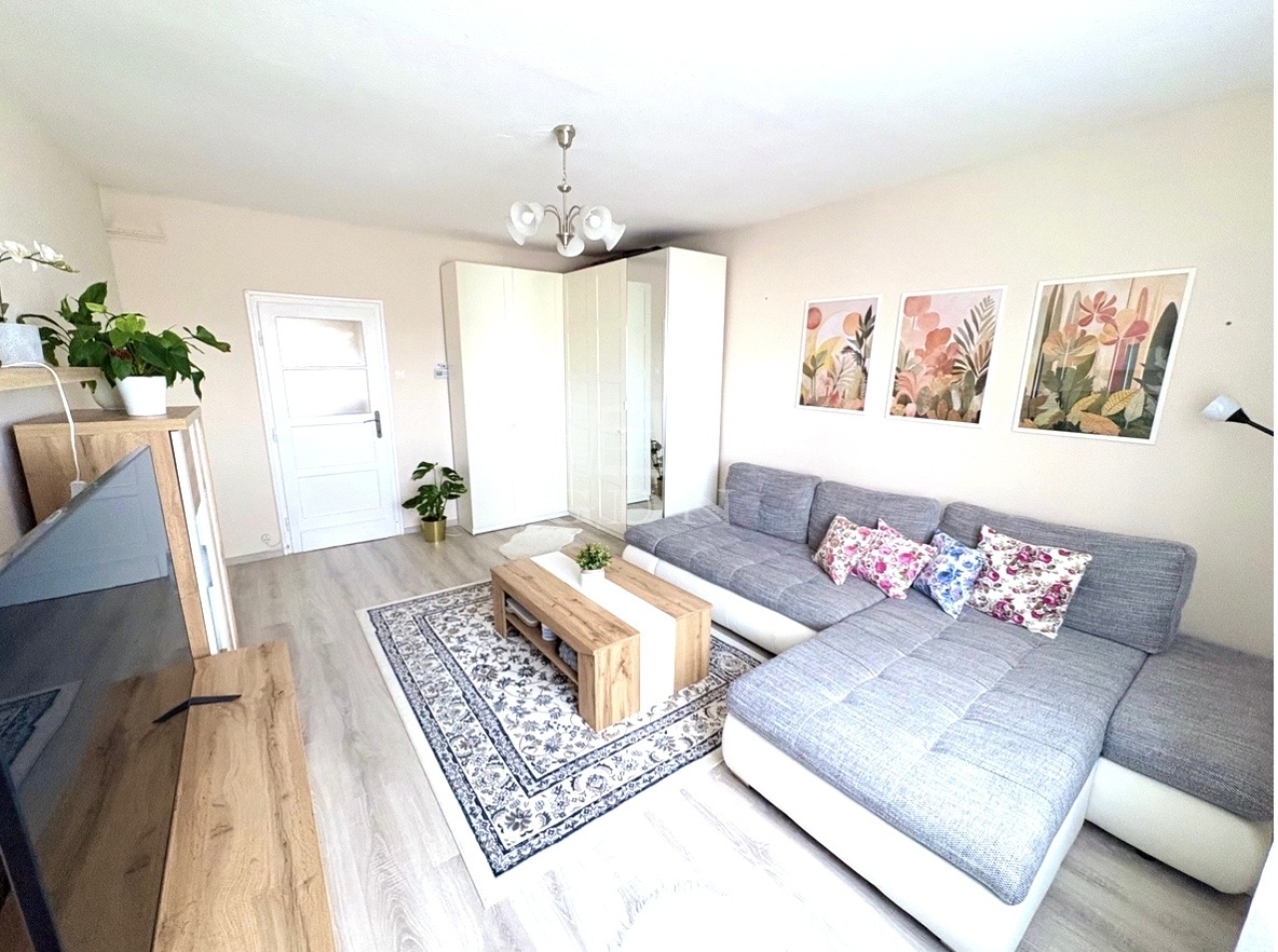 A 49 m²-es, 1 + 1 félszobás ingatlan egy 3 emeletes társasház legfelső szintjén helyezkedik el (lift nincs). A lakás elosztása praktikus: az előszobából külön nyílnak a helyiségek, a nappali az utcára, míg a hálószoba a nyugodt, belső kertre néz. A terek világosak, kellemes hangulatot biztosítanak.