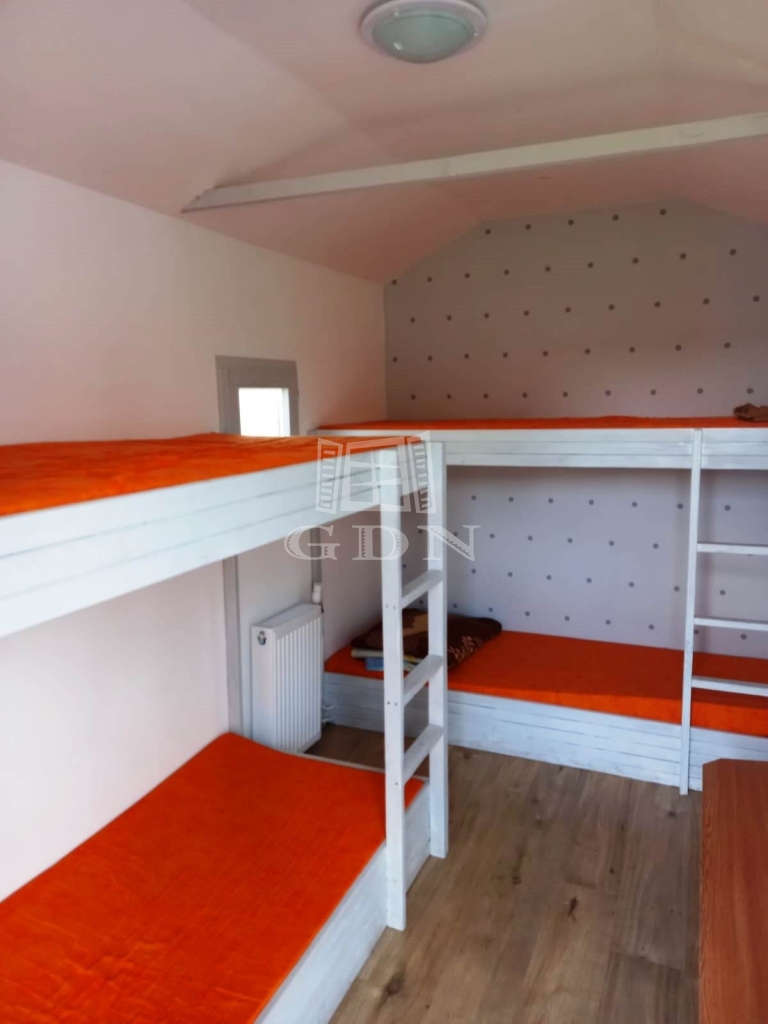Telken még 5 db könnyűszerkezetes 3,60 x 2 m nagyságú, fűthető kis házikó, berendezve ágyakkal, ahol 20 fő elhelyezhető.
