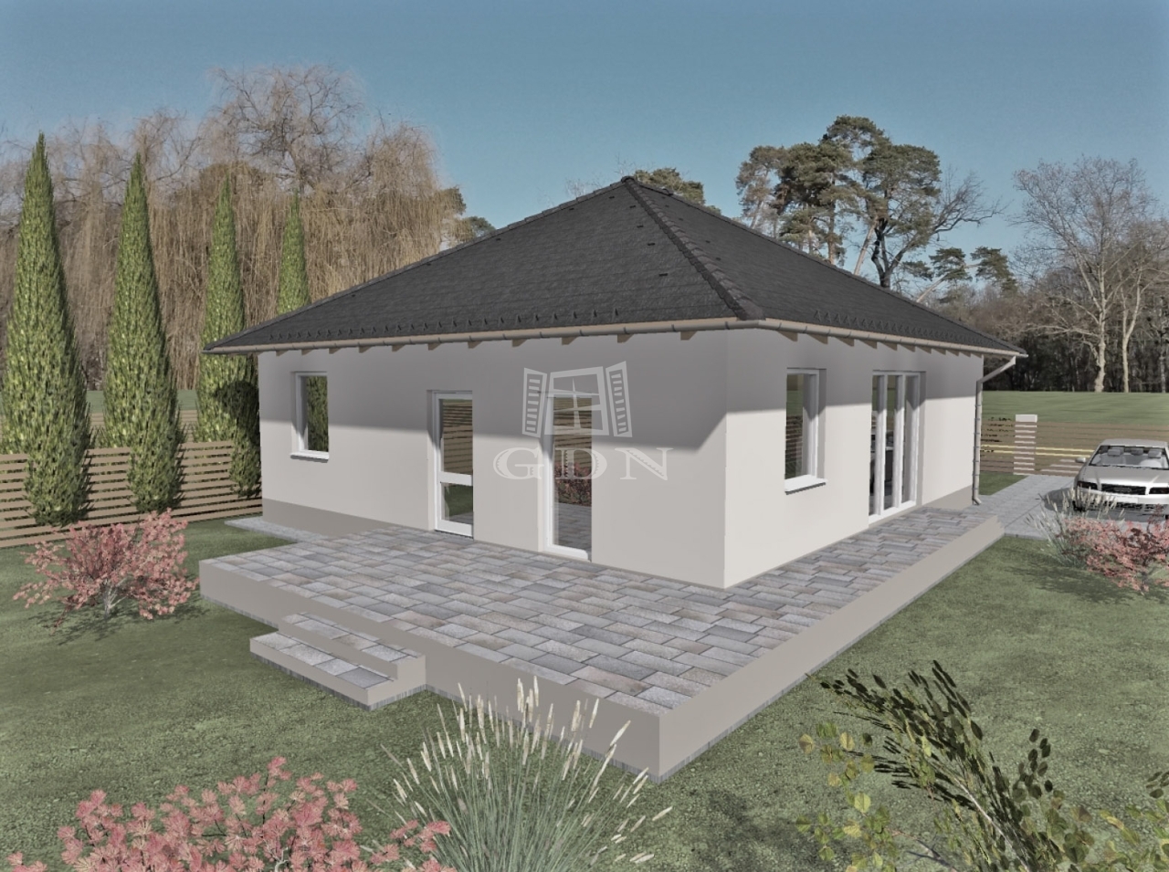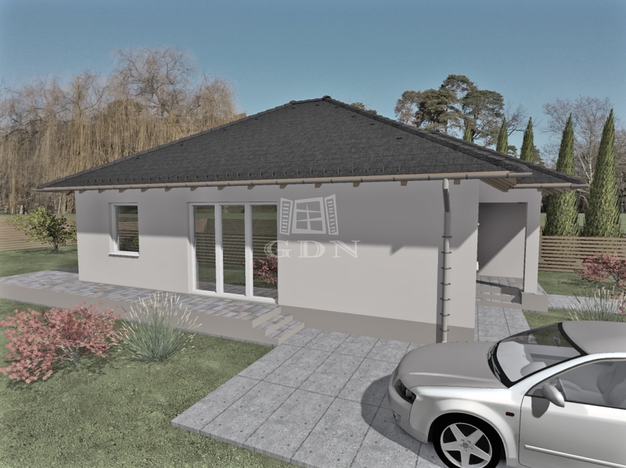 A nyitóképen látható ingatlant a kivitelező azonos tervek alapján építette, azonban ez a ház már új tulajdonosra talált. A kivitelező több, ugyanezen terv szerint megvalósult ingatlant is épített Gyöngyöshalászon, melyeket referenciaként szívesen megmutatunk.
