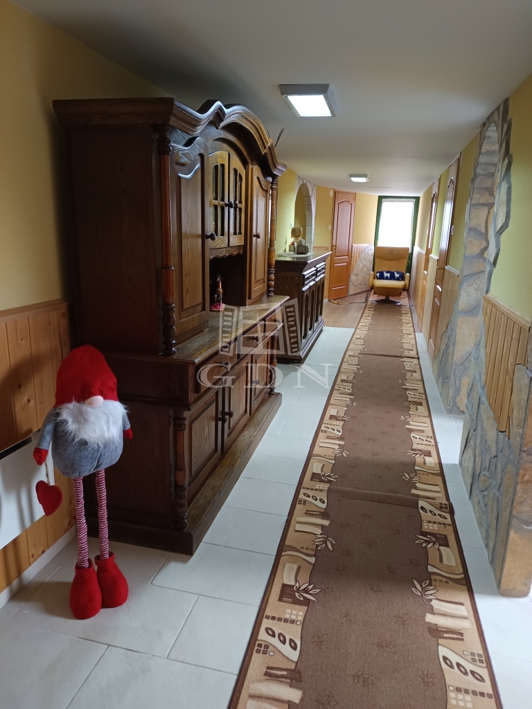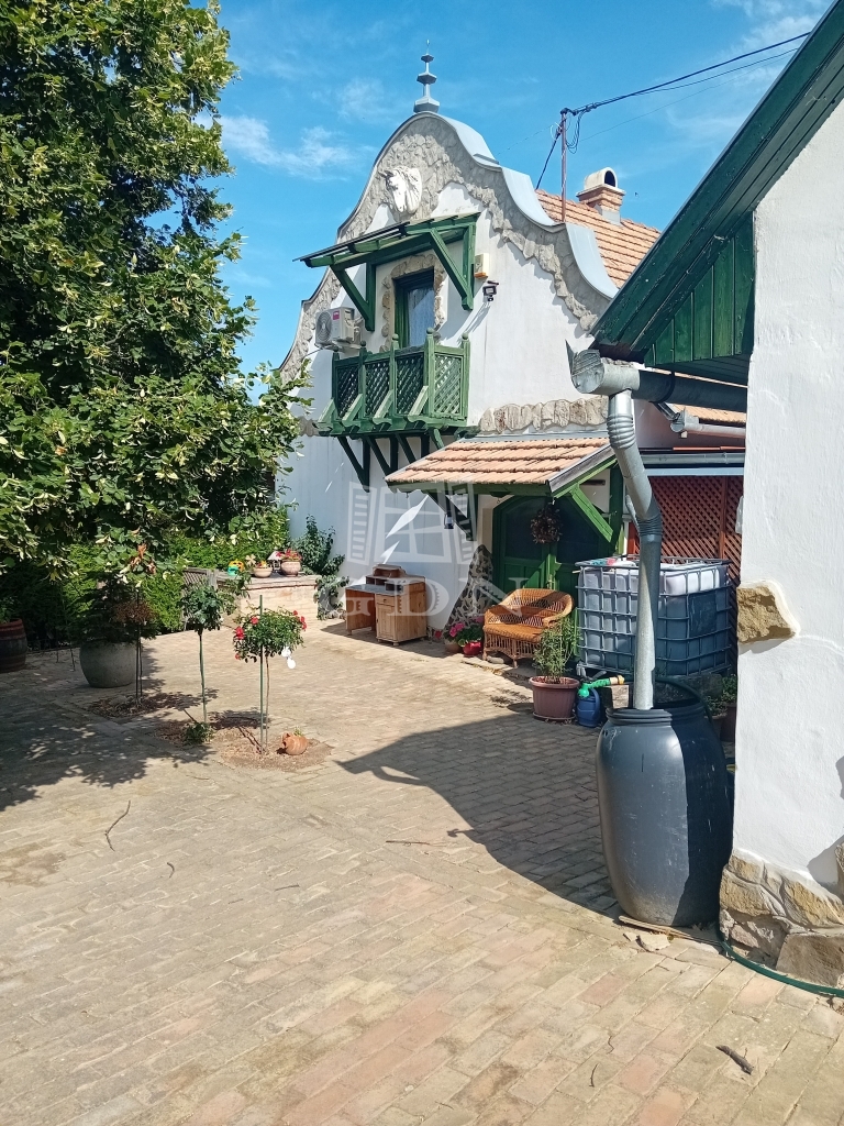 b.) Központi épület, amely 200 m2 alapterületű (teljesen felújított, közel 200 éves kúria) földszinti részén szobák, nappali-étkező, fürdőszoba, wc, konyha, közlekedő, pince lejáró található. Fűtés vízpatkós kandalló radiátorokkal, vagy inverteres klímákkal.