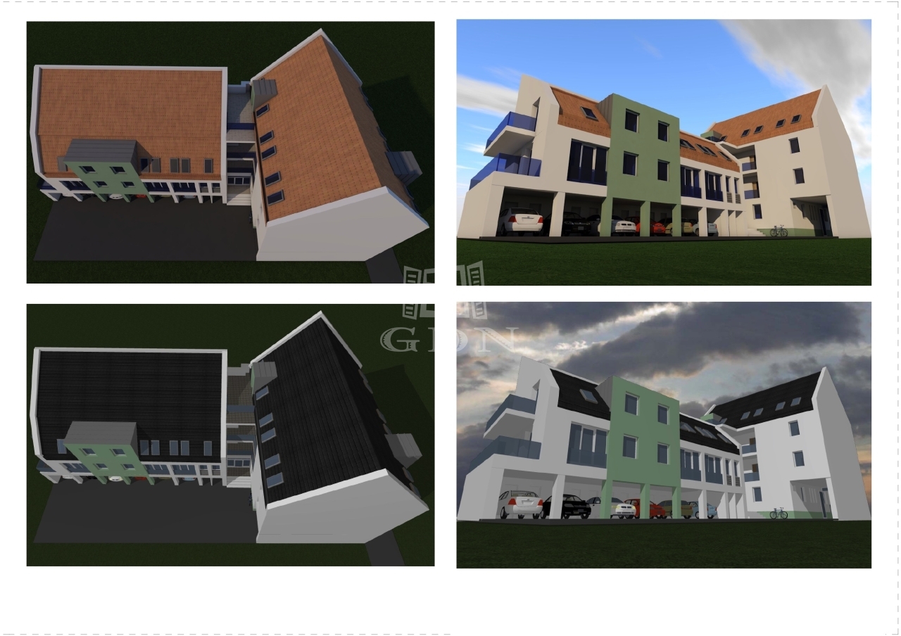 A társasház zárt, elektromos kapubeállóval ellátott udvarán kialakított felszíni beállóhely 2.500.000. Ft-ért, míg "garázs" és hozzá tartozó dupla méretű tároló helyiség 8.000.000.-Ft-ért vásárolható a lakásokhoz.