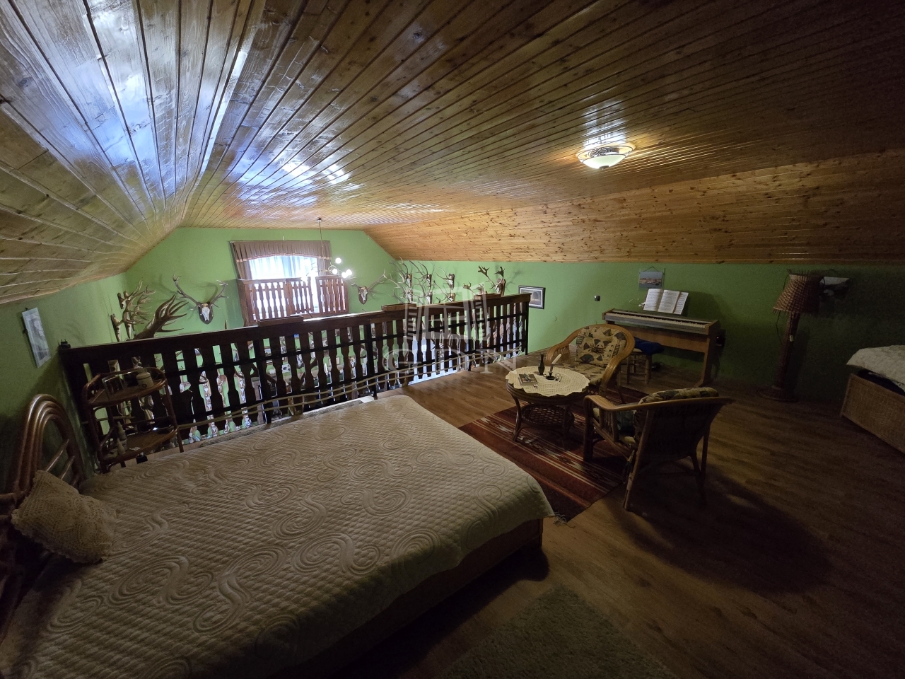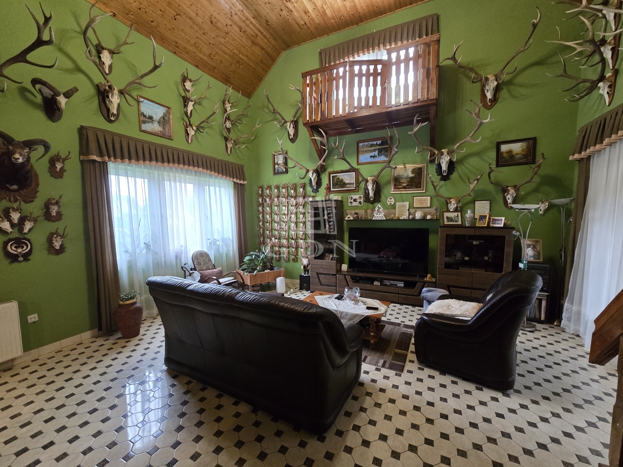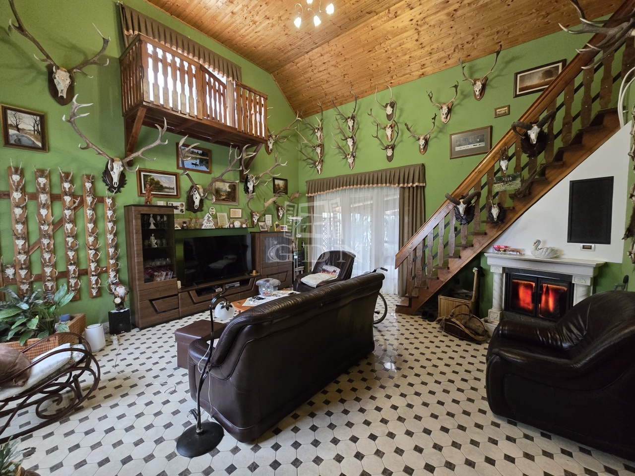 A nappali igazán egyedi stílusú a közel 580 cm-es belmagasságával, az ingatlan további helyiségében átlag 275cm a belmagasság. A ház két bejáraton át is megközelíthető, valamin a nappaliból és két szobából együttesen kilépve érkezünk meg egy fedett teraszra, mely nyáron a délutáni ebédek helyszíne, míg a hidegebb időkben téliesített változatban add helyet a télikertnek.  Az otthon melegét gázkondenzációs padlófűtés, fatüzelésű kandalló illetve gázkonvektorok, míg a melegvíz ellátásáról villany és gázbojler gondoskodik. Hőszigetelt fa nyílászárókkal ellátott.