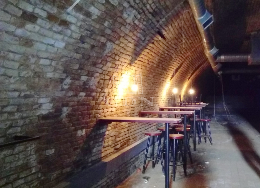 A létesítmény rendszer tartalmaz 2 pincehelyiséget, - amik 175,3 és 93,5 m2 területűek, - valamint 2 pincelejárót, 2 raktárat, 1 irodát, 1 öltözőt, egy közlekedő helyiséget, 3 férfi mosdót WC-vel, 4 női mosdót WC-vel, 1 személyzeti mosdót WC-vel és egy 120 m2-es vészkijáratot.