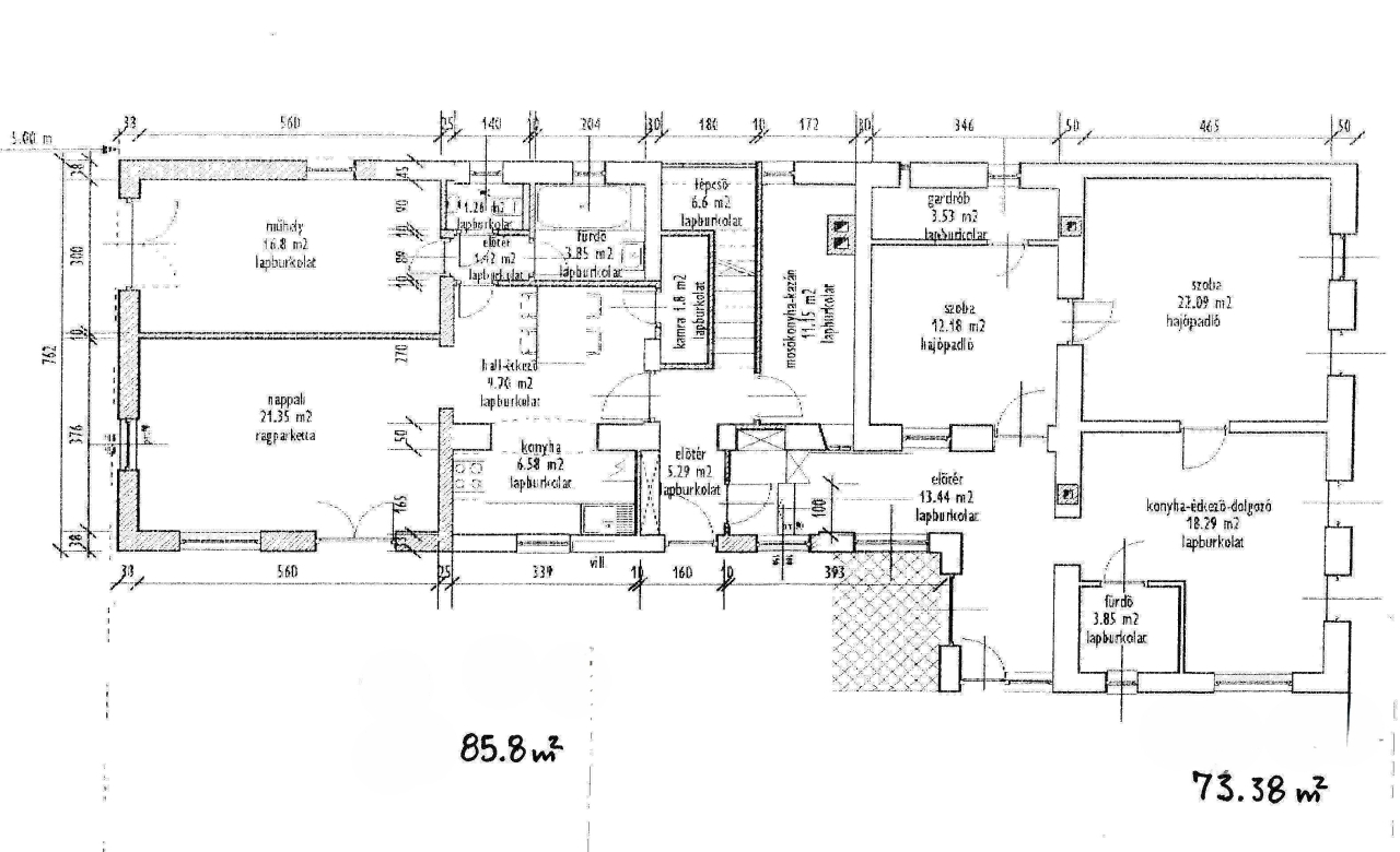 - Falak: 50 cm mészkő, tégla + szigetelés