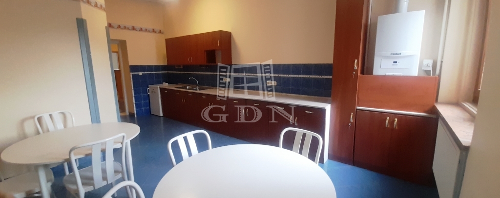 Több nagyobb és kisebb helyiségből áll, tartozik hozzá konyha és szociális helység. A helyiségek világosak.