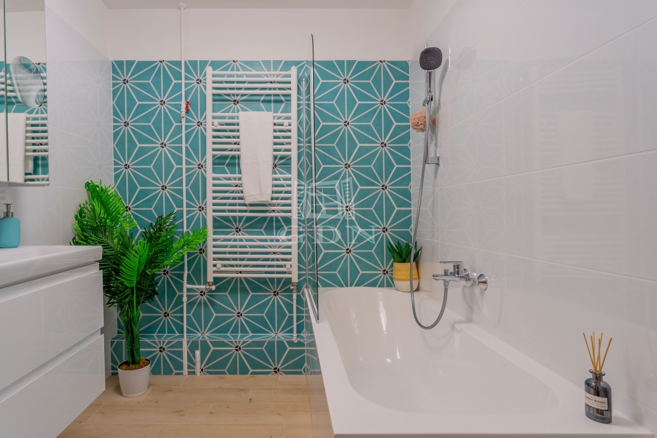 Az átgondolt alaprajzi módosításnak köszönhetően a terek jól kihasználtak és élhetőek. A keleti tájolásnak és a sok ablaknak köszönhetően a lakás rendkívül világos, ugyanakkor csendes. Az erkélyről szép, nyitott panoráma tárul elénk.