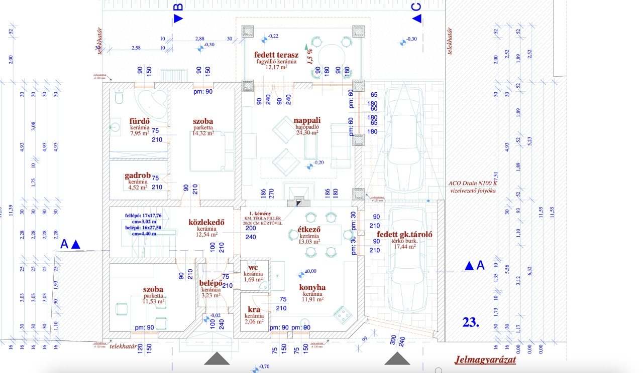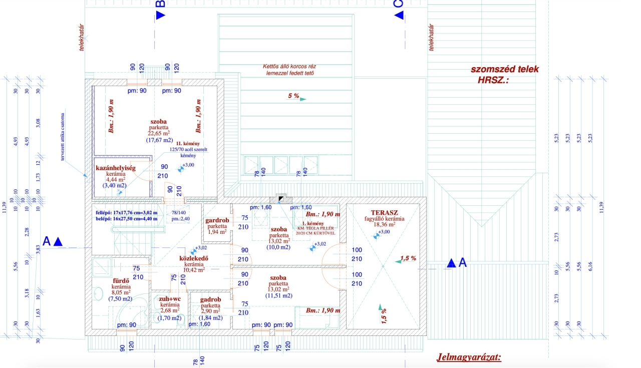 A ház bruttó 312 m2, nettó hasznos alapterülete: 270 m2.