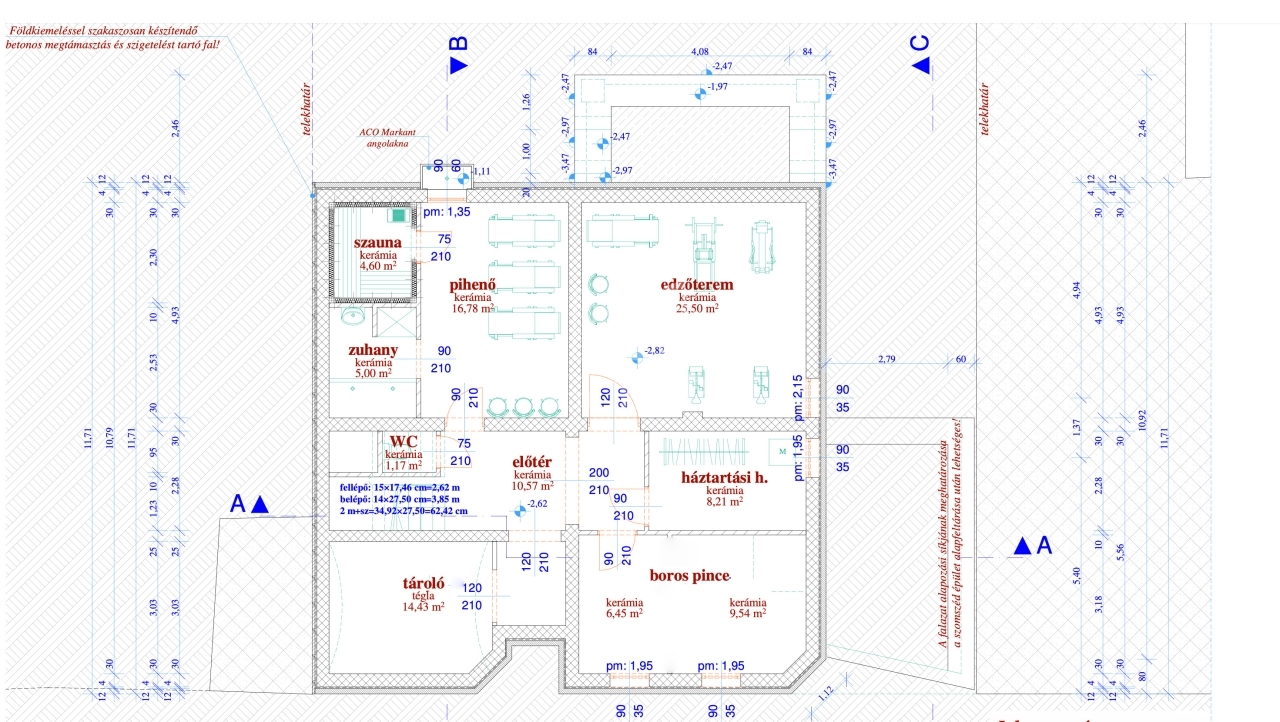 A pince szint is teljes értékű részt képez, edzőteremmel, pihenőhelyiséggel, szaunával, szoláriummal és egy hangulatos borospincével, a tárolási lehetőségeken kívül.