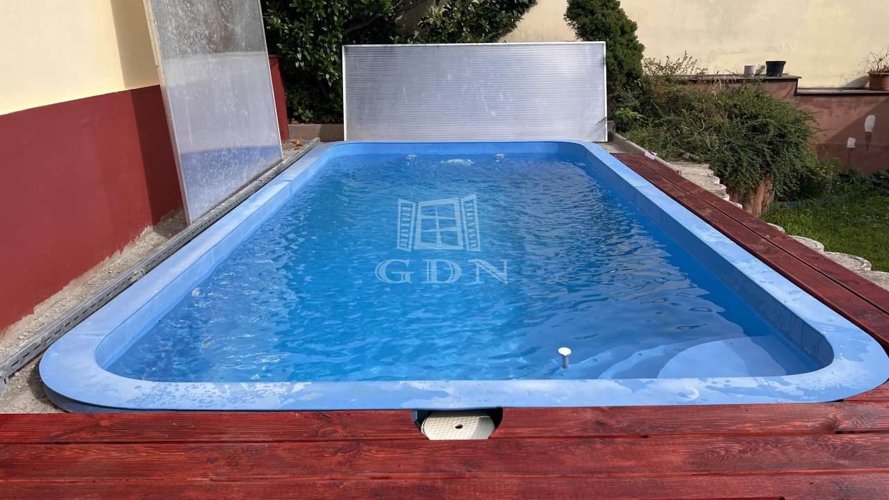 A kert egy privát, zöld, kis oázis a város közepén, mely menedéket nyújt a hétköznapi rohanás elől, fűtött medencével, fedett terasszal, tárolóval, ideális a családi és baráti pihenéshez, feltöltődéshez.