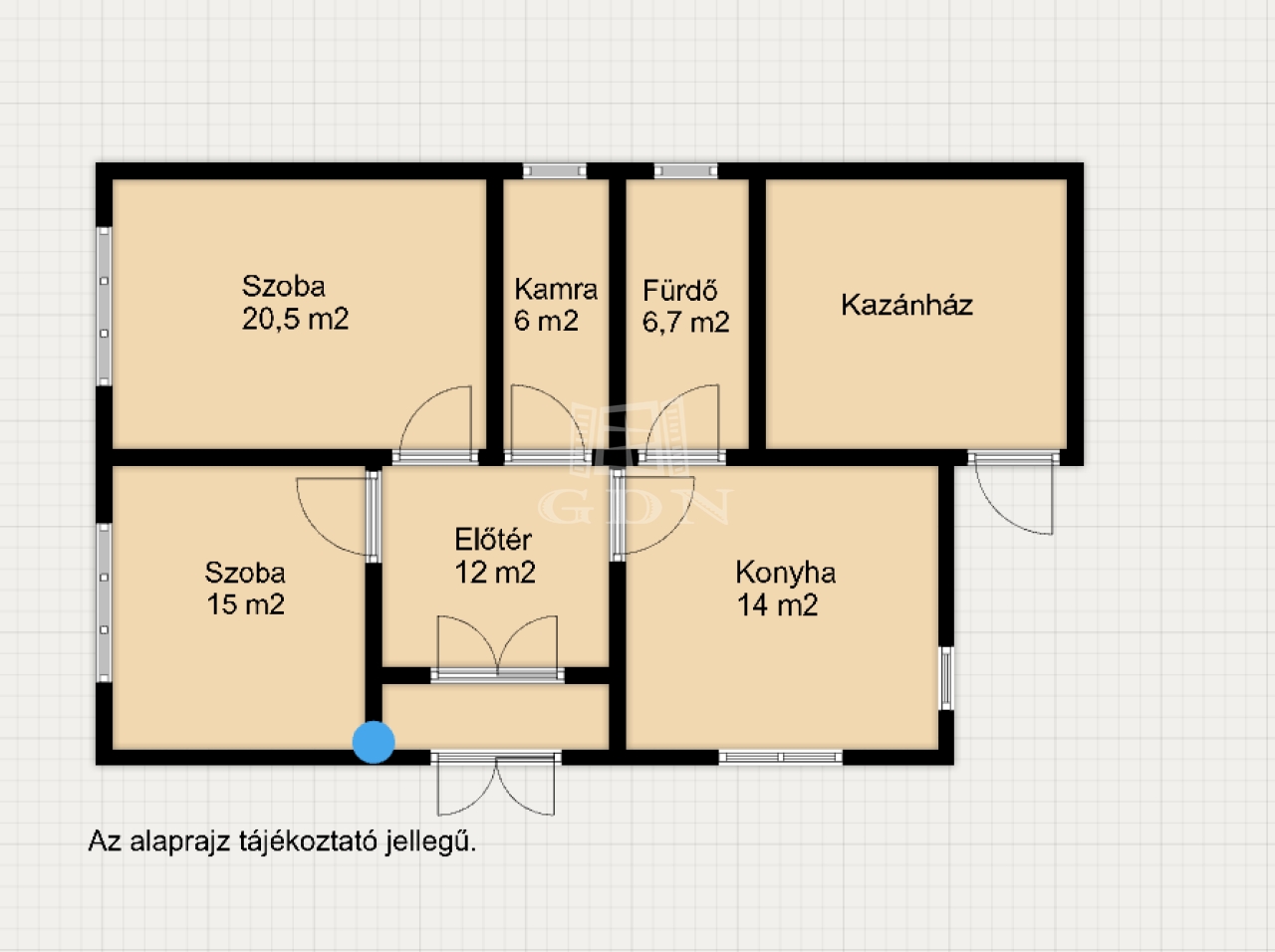 Nyílászárói fából készültek, fűtéséért gázkazán felel(t), mely működő állapotban van jelenleg is.