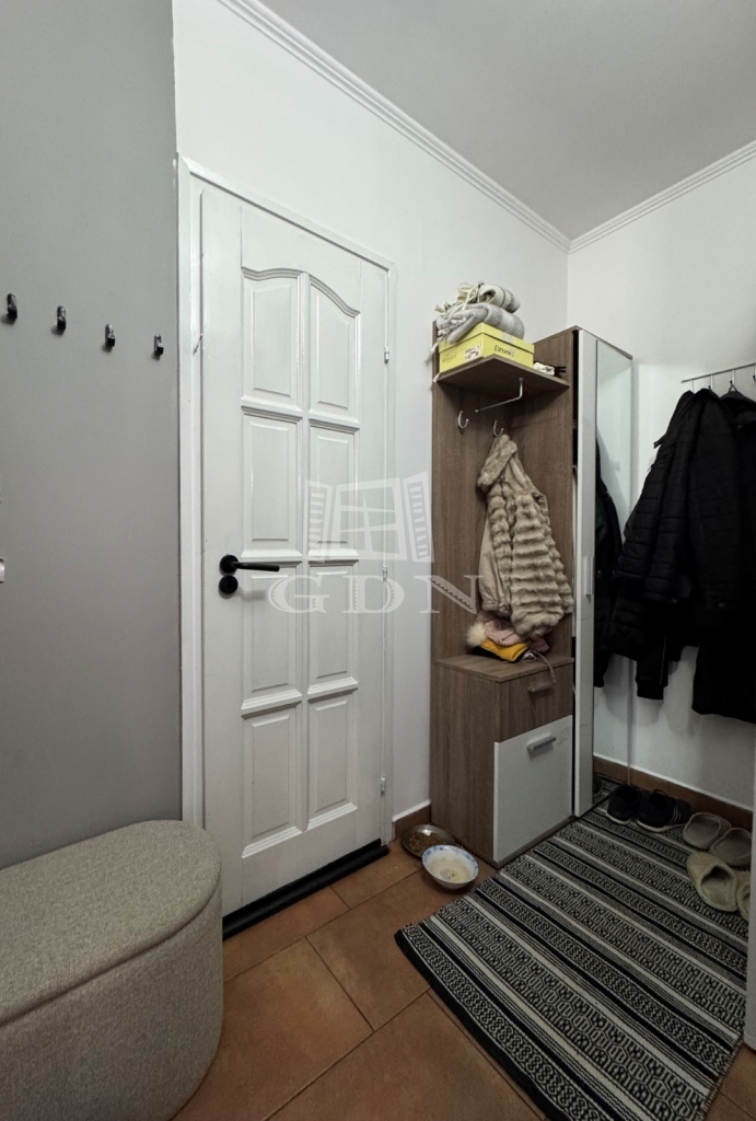 A telekterület 420m2, teljesen önálló, körbekerített és füvesített, térkövezett része alkalmas autóbeállónak.