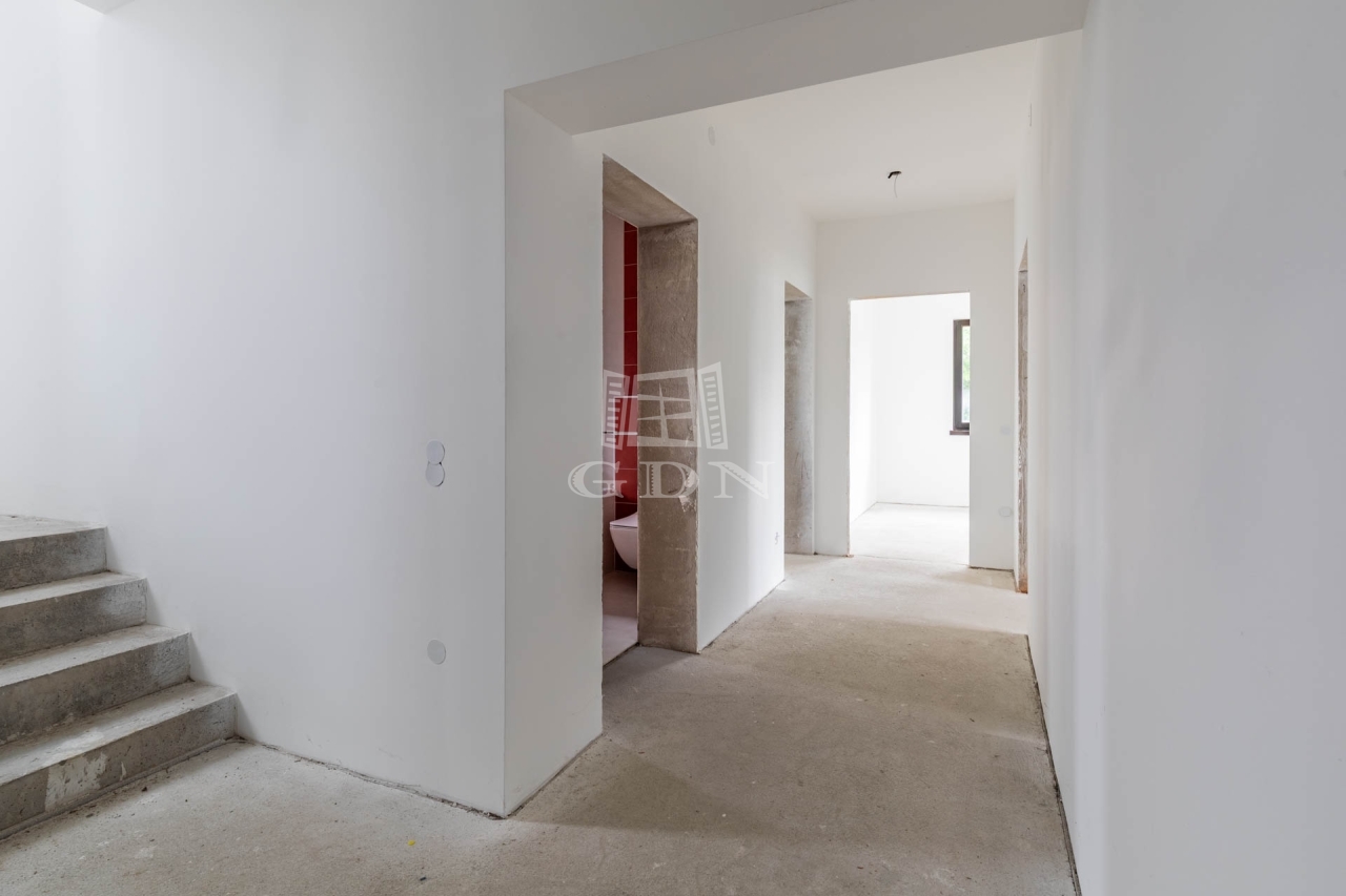 A 112 nm-es nettó alapterületű emeleten 1 nappali (kandalló előkészítéssel), 3 szoba, 2 fürdőszoba, valamint 101 nm-es részben fedett és pergolás körpanorámás terasszal.