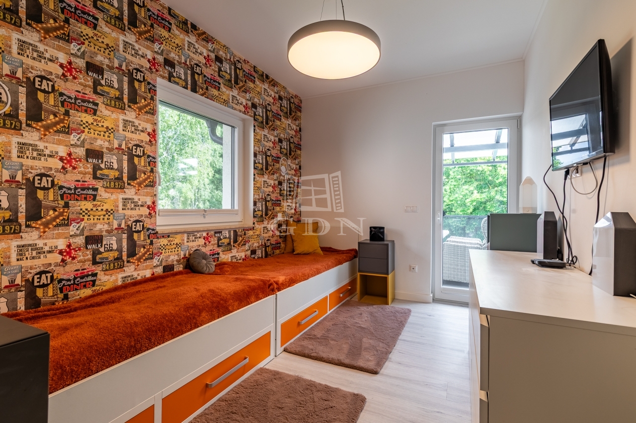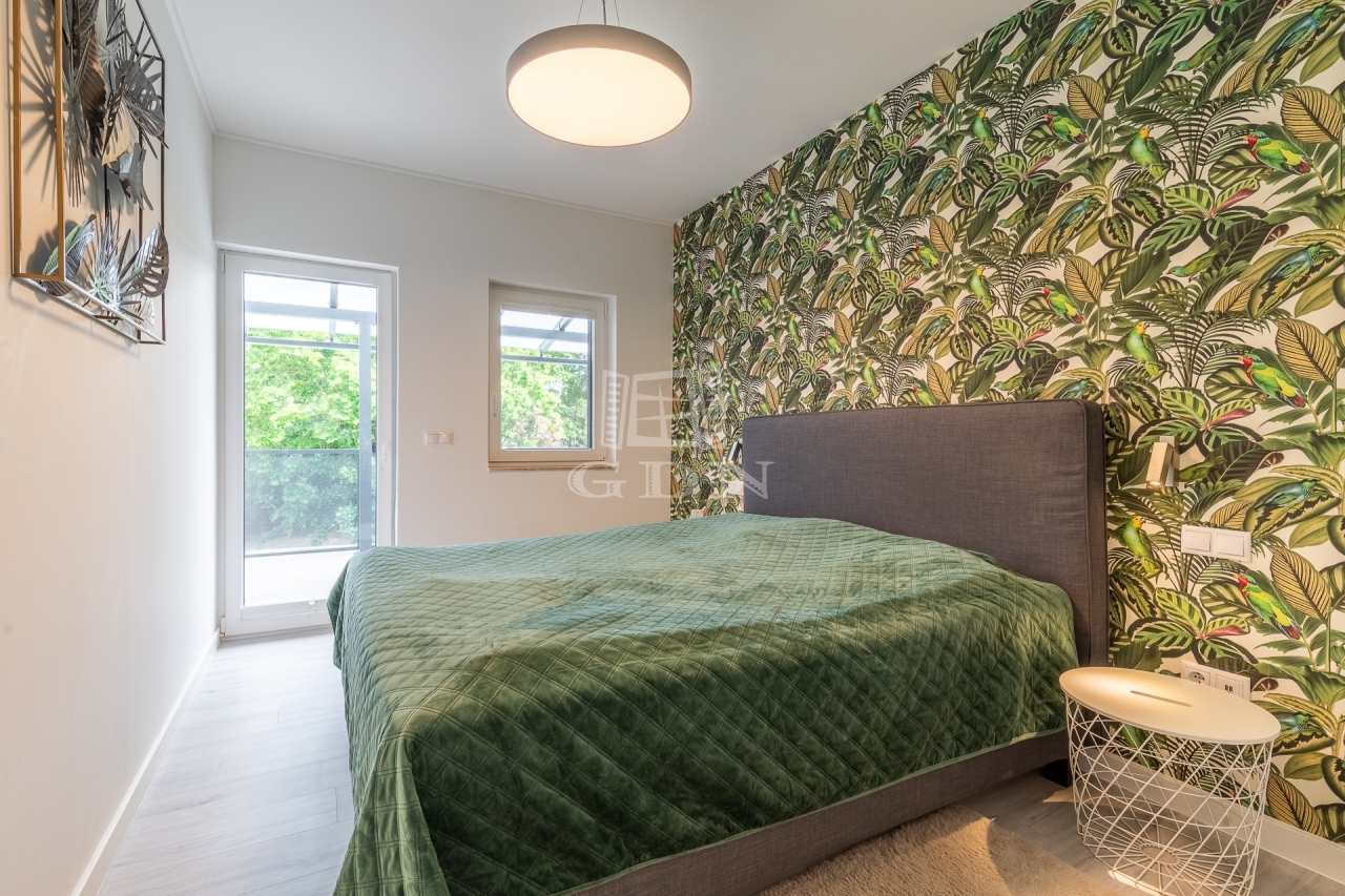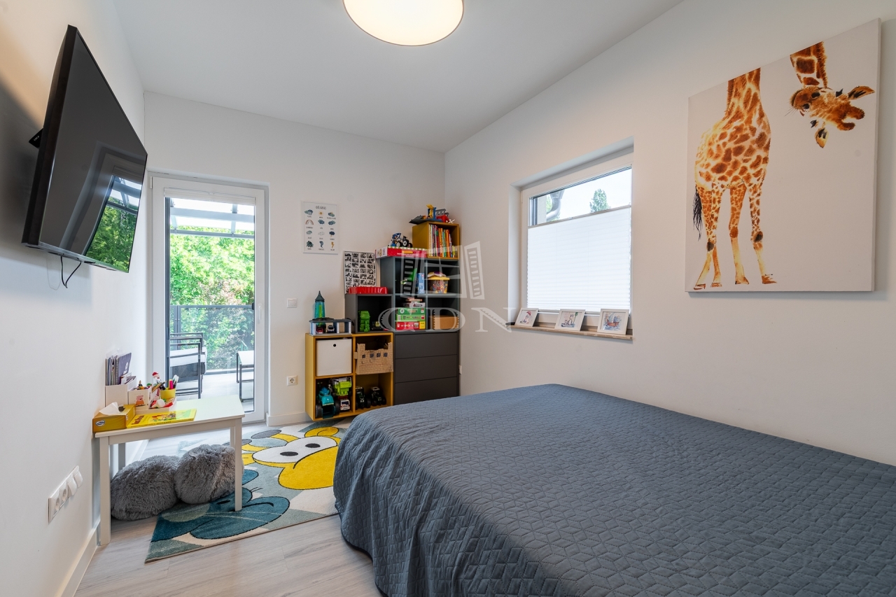 Az ingatlan kertész által gondozott kerttel, programozható öntözőrendszerrel, kamera-, beléptető- és riasztórendszerrel, valamint elektromos autó töltővel felszerelt.