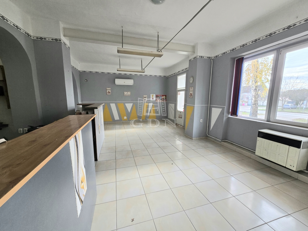 Az utcafrontról megközelíthető, tágas fő üzlettér fogad minket, amelyhez több mosdóhelyiség és egy kisebb konyhai rész kapcsolódik. Az épület hátsó részében további mellékhelyiségek, tárolók, valamint egy külön kialakított, kisebb lakrész található – ezt a tulajdonosok saját használatra alakította ki, hogy szükség esetén ott tölthessék az éjszakát. A lakrész alkalmas vendégszobának, irodának vagy személyzeti pihenőnek is.