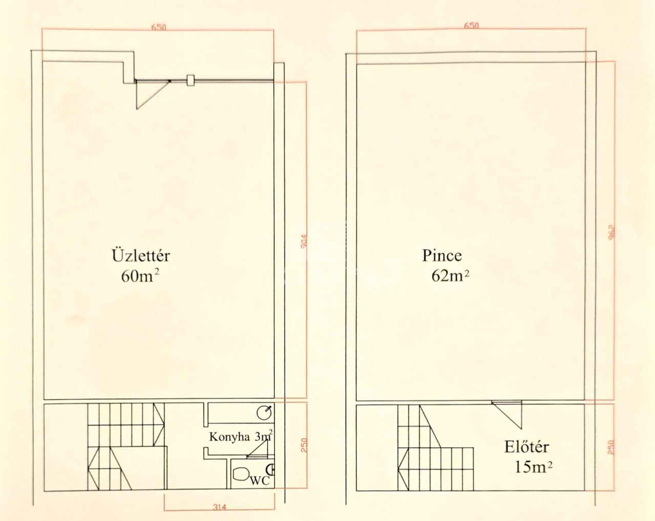 Földszint (60 m²): Utcafronti üzlettér, teakonyha, mosdó