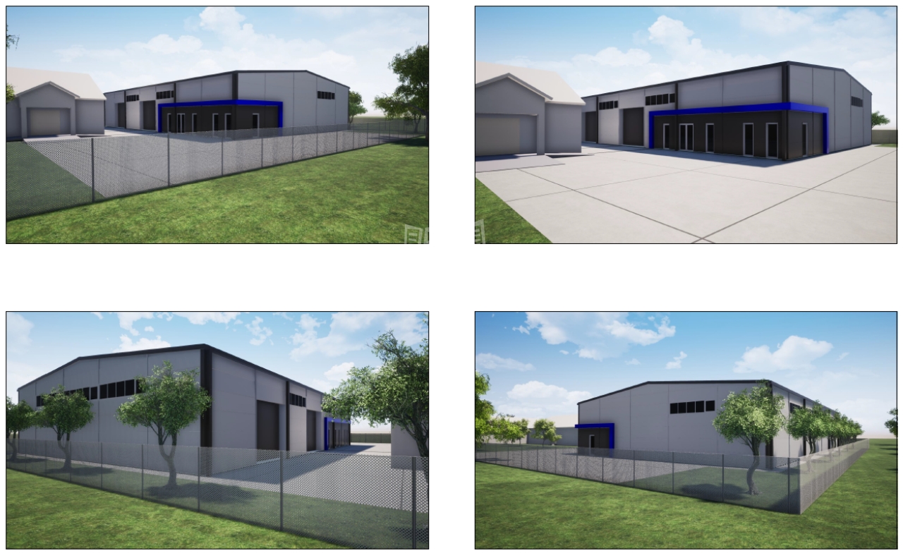 A másik egy 3×125 A-s ipari csatlakozás, mely az építhető új csarnok sarkánál lép be a telekre, és földkábelen keresztül jut el a meglévő csarnokhoz.