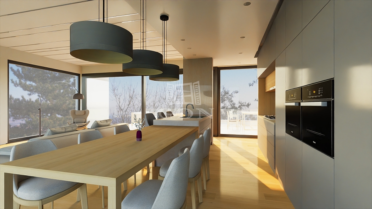 A DUNA ÖRÖKPANORÁMÁJA, a DÉLKELETI TÁJOLÁS és a GIGANTIKUS ÜVEGFELÜLETEK egész nap elárasztják fénnyel az otthont.