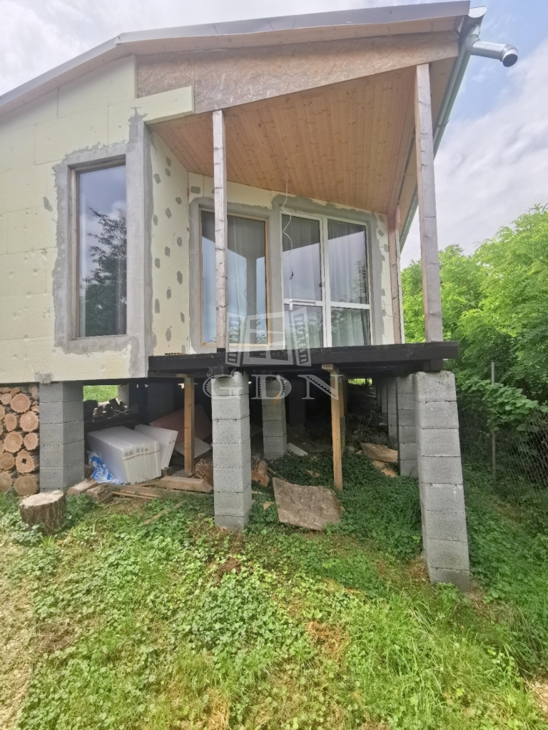 A telken található szerkezetkész ház 60 m²-es, könnyűszerkezetes technológiával készült, befejezés után állandó lakhatásra, vagy hétvégi időtöltésre is kiváló lehetőséget nyújt. A házban fürdőszoba, amerikai konyhás nappali és egy hálószoba alakítható ki.