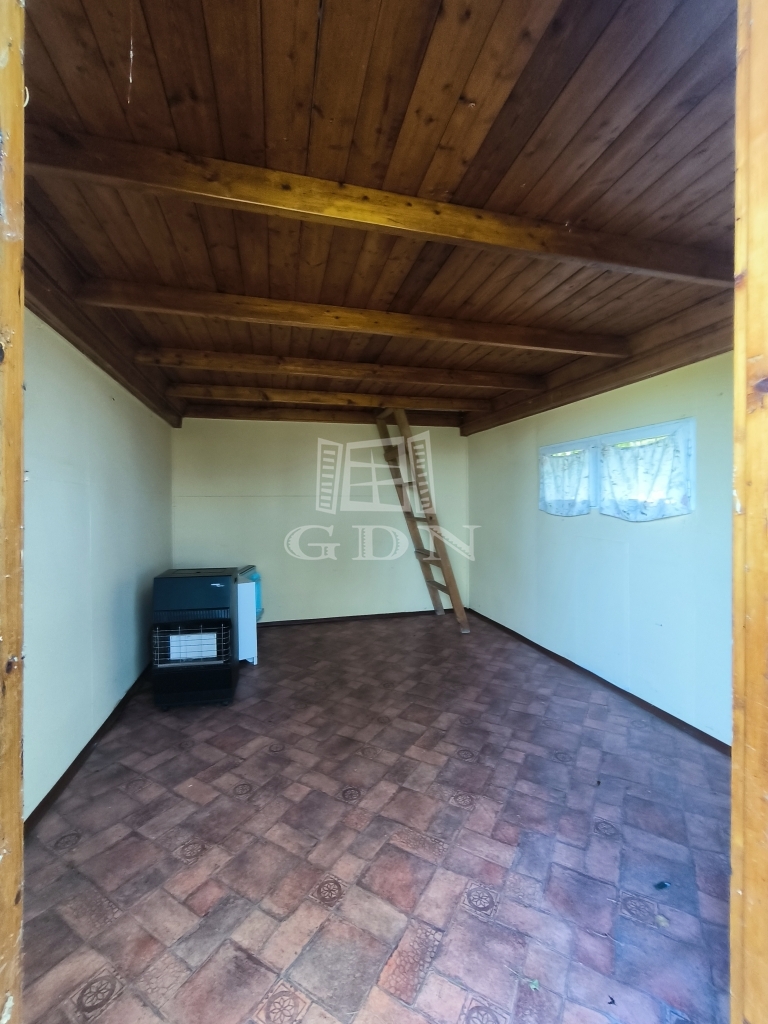 Nógrád zártkerti részén, aszfaltozott út mellett eladó, egy 16 nm alapterületű részben alápincézett, tetőtérbeépítéses, alpesi tetős faház, 821 nm-es telken.