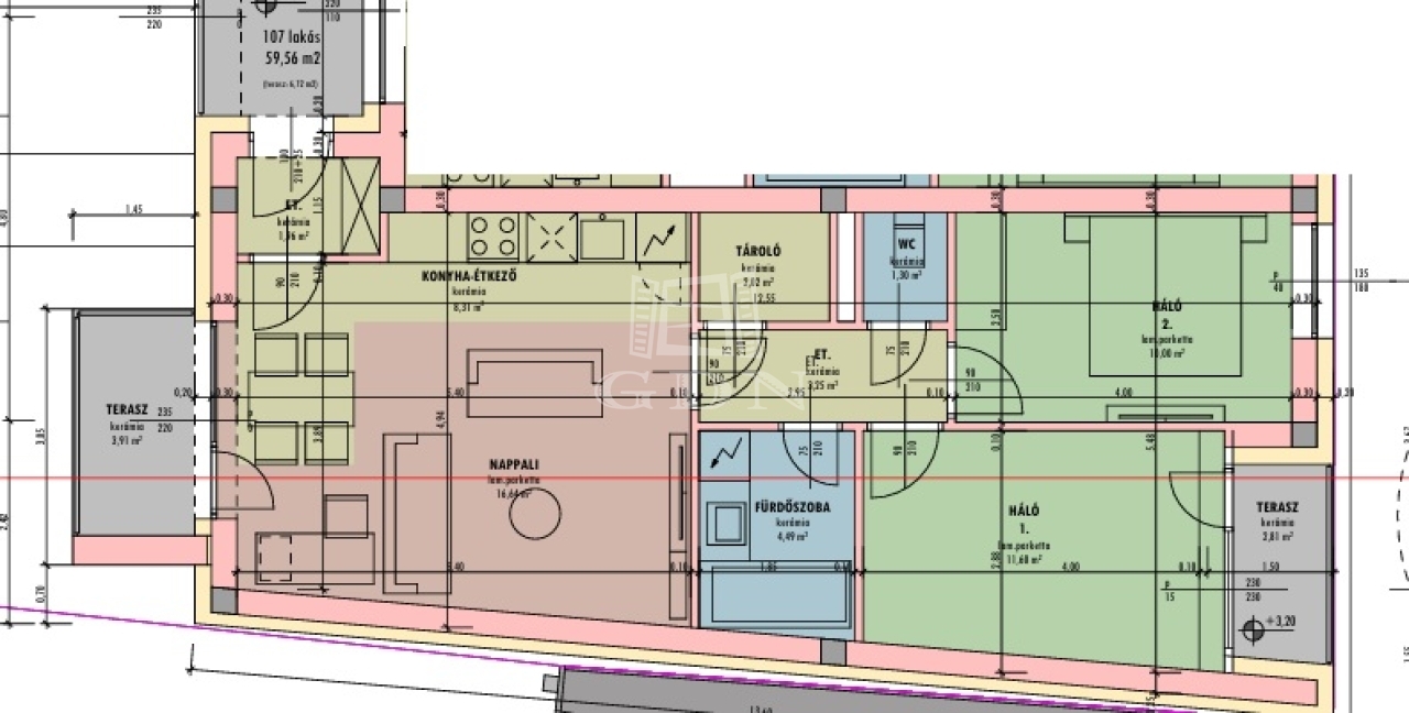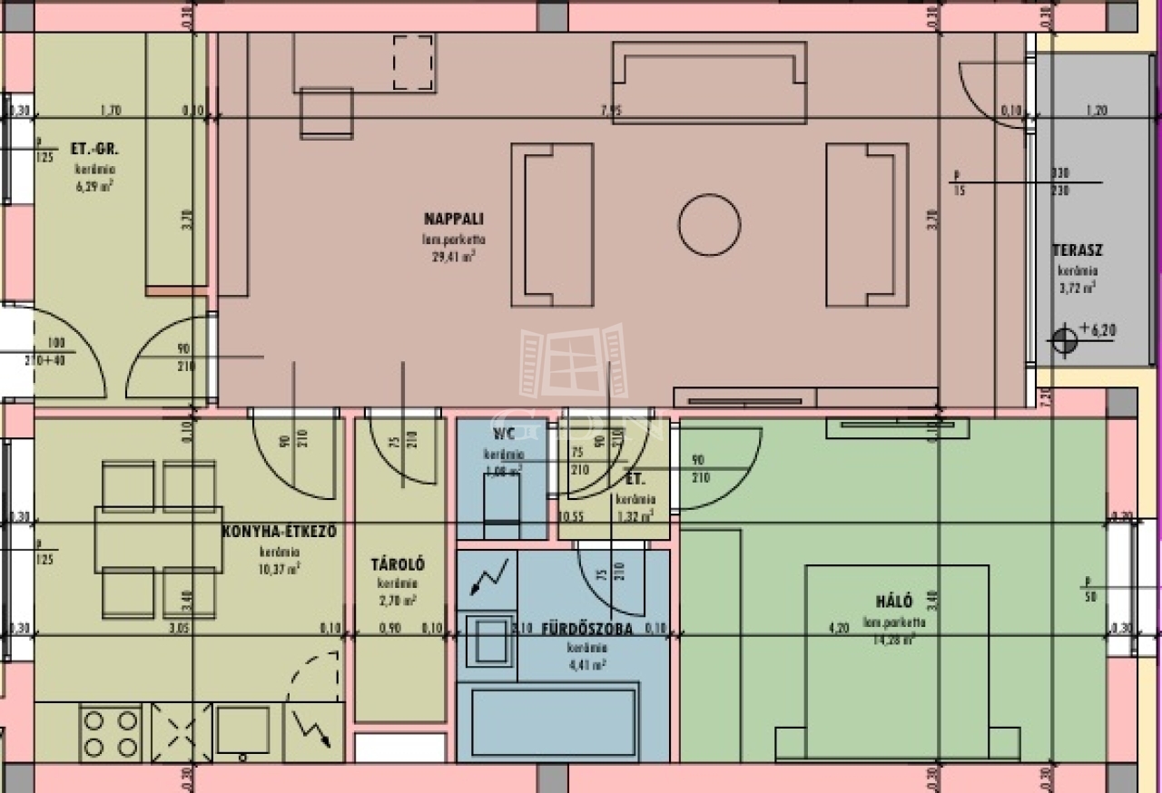 Az új építésű társas ház várhatóan 8 hónapon belül kerül átadásra, mely korszerű hő takarékos építészeti megoldásokat alkalmazva készül el. A falazata monolit vasbeton vázszerkezettel Porotherm 30 X-Therm Rapid dryfix kerámia tégla falazatta épül, mely 12 cm-es EPS Grafit homlokzati hőszigetelést kap.