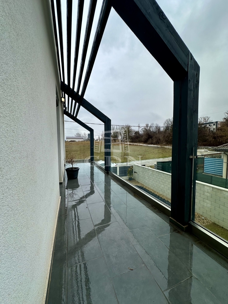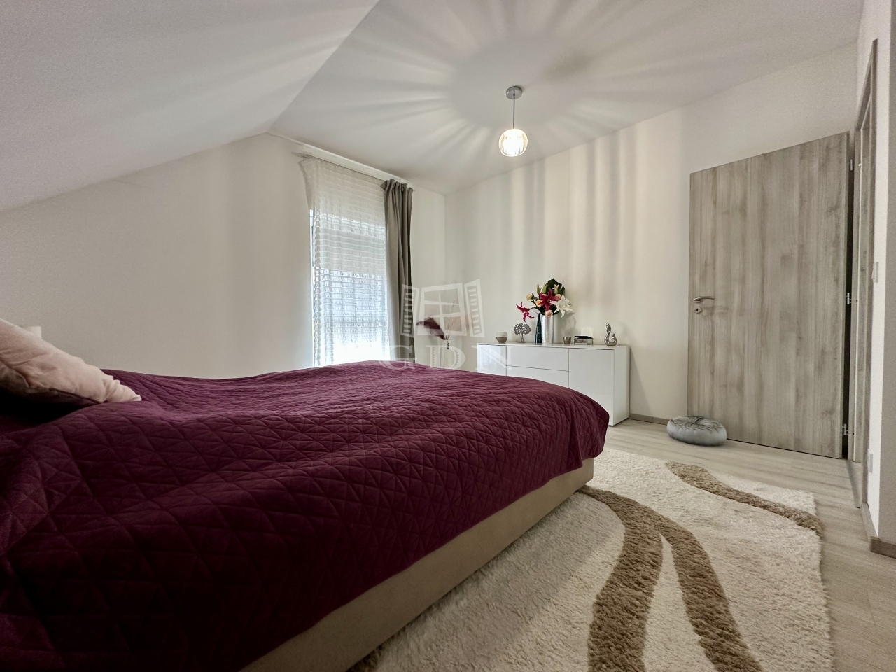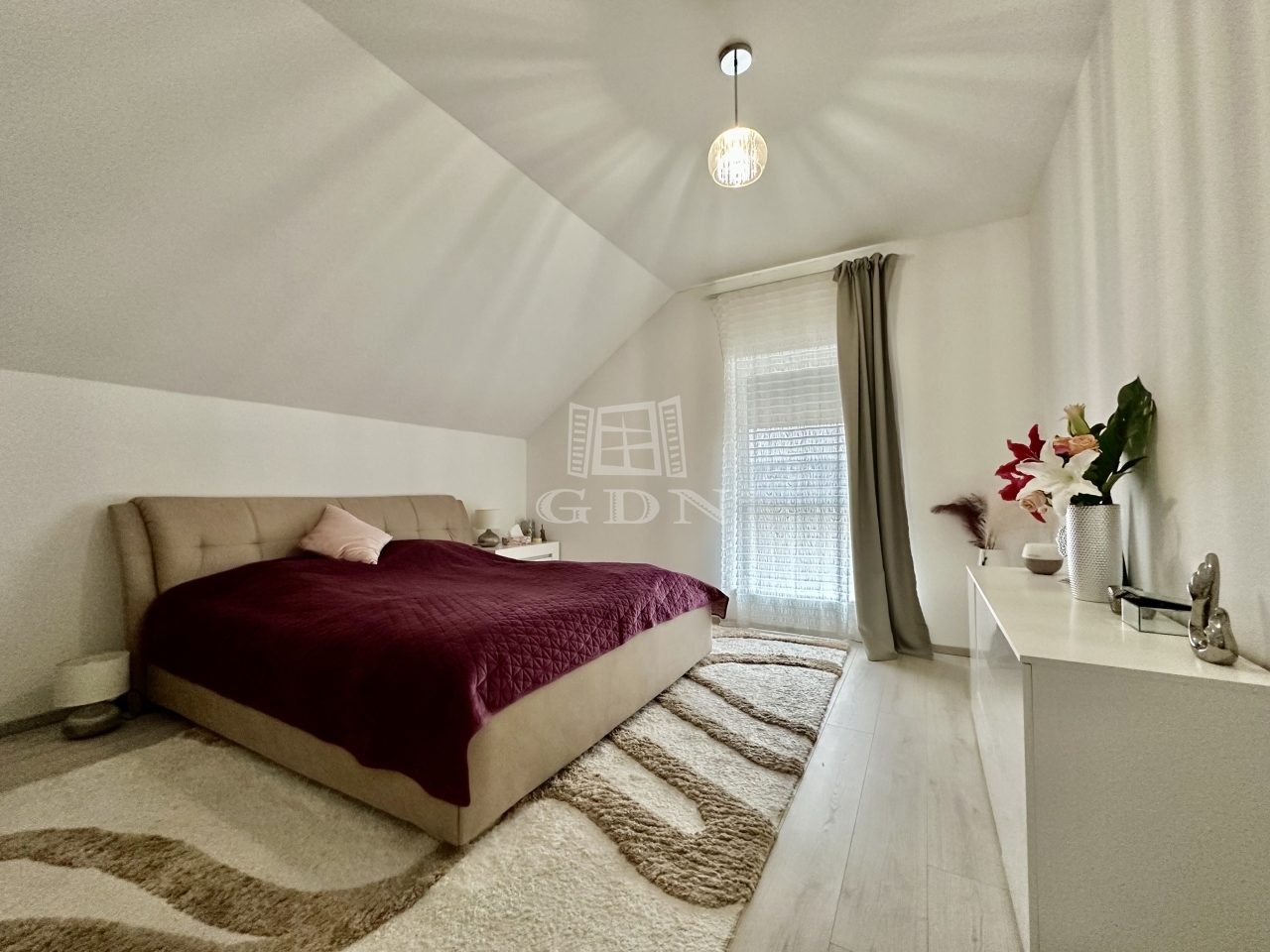 Az emeleten három különnyíló hálószoba, fürdőszoba, közlekedő, valamint egy 16 m²-es erkély és egy 22,8 m²-es tetőterasz kapott helyet, amelyek tovább növelik a komfortérzetet.