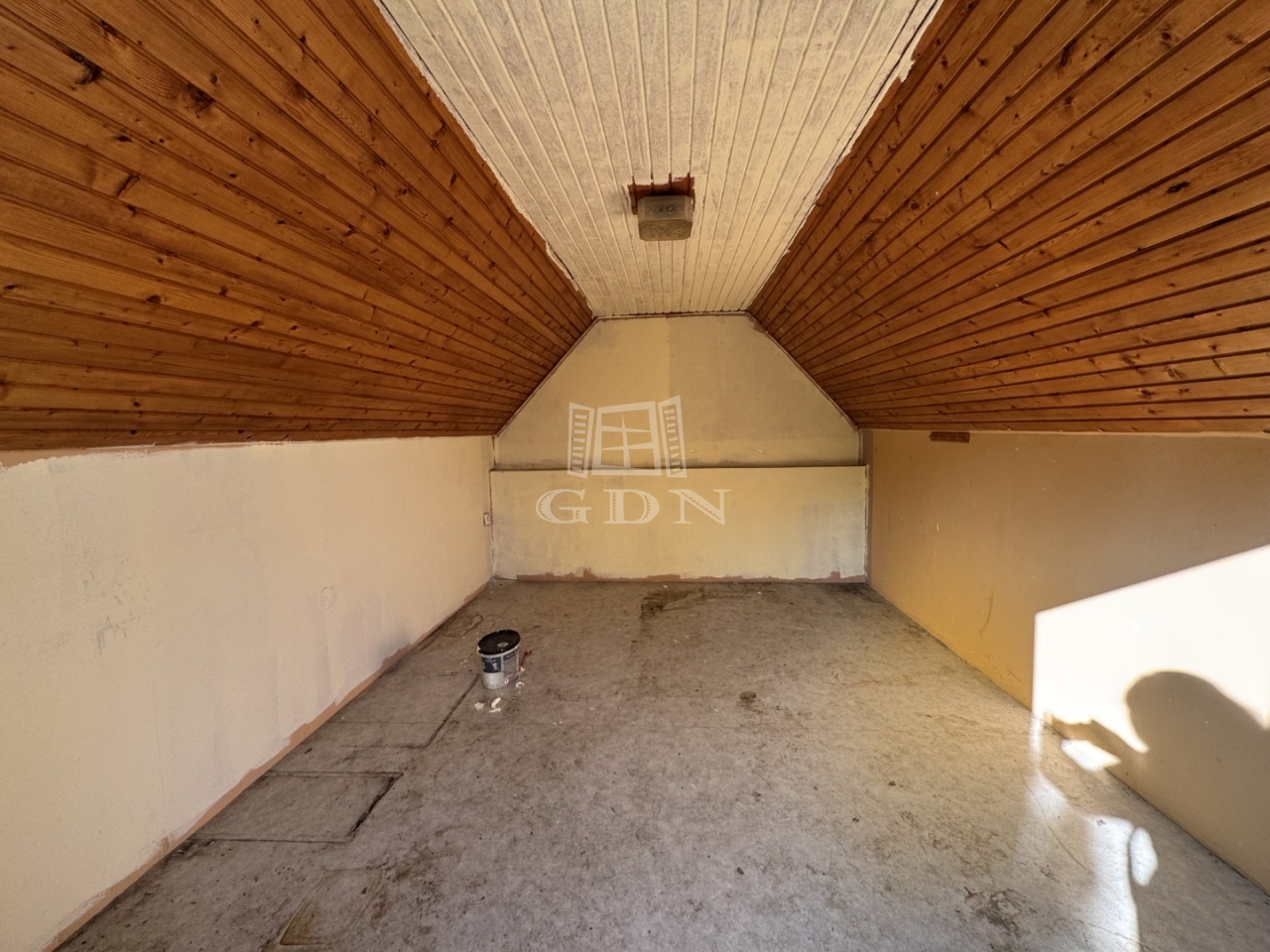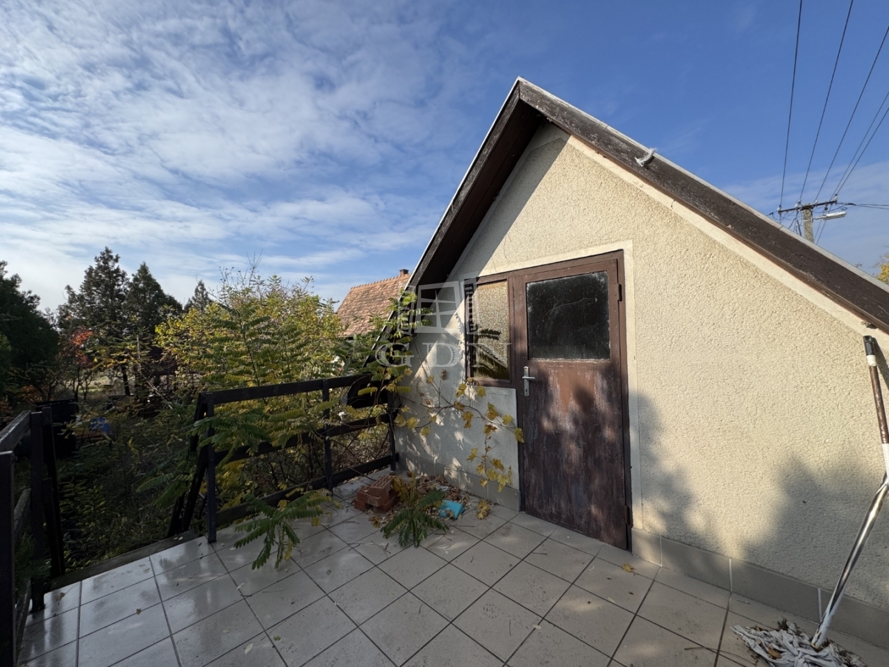 Az épület 40m2 hasznos alapterületű, a 90-es évek elején épült, jó állapotú, kisebb ráfordítással akár állandó lakhatásra is alkalmassá tehető. Alsó szintjén egy előtér található, amelyből nyílik egy 20 m2-es pince is. A felső szintet csak a ház külső oldalától lehet megközelíteni. Itt egy szoba található.