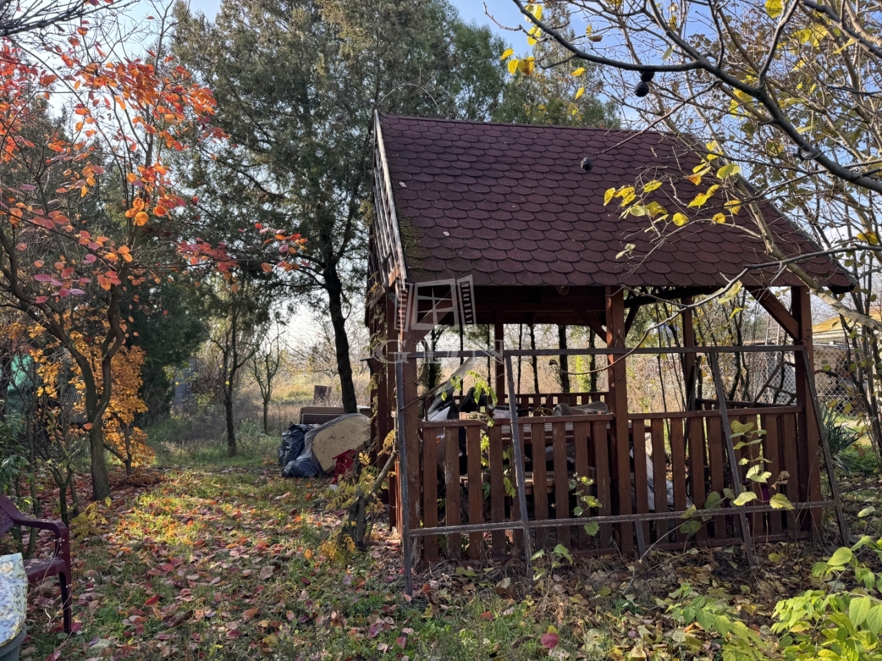 A telek 1073m2, teljesen körbekerített, parkosított és gyümölcsfákkal beültetett. Található rajta egy fúrt kút is.