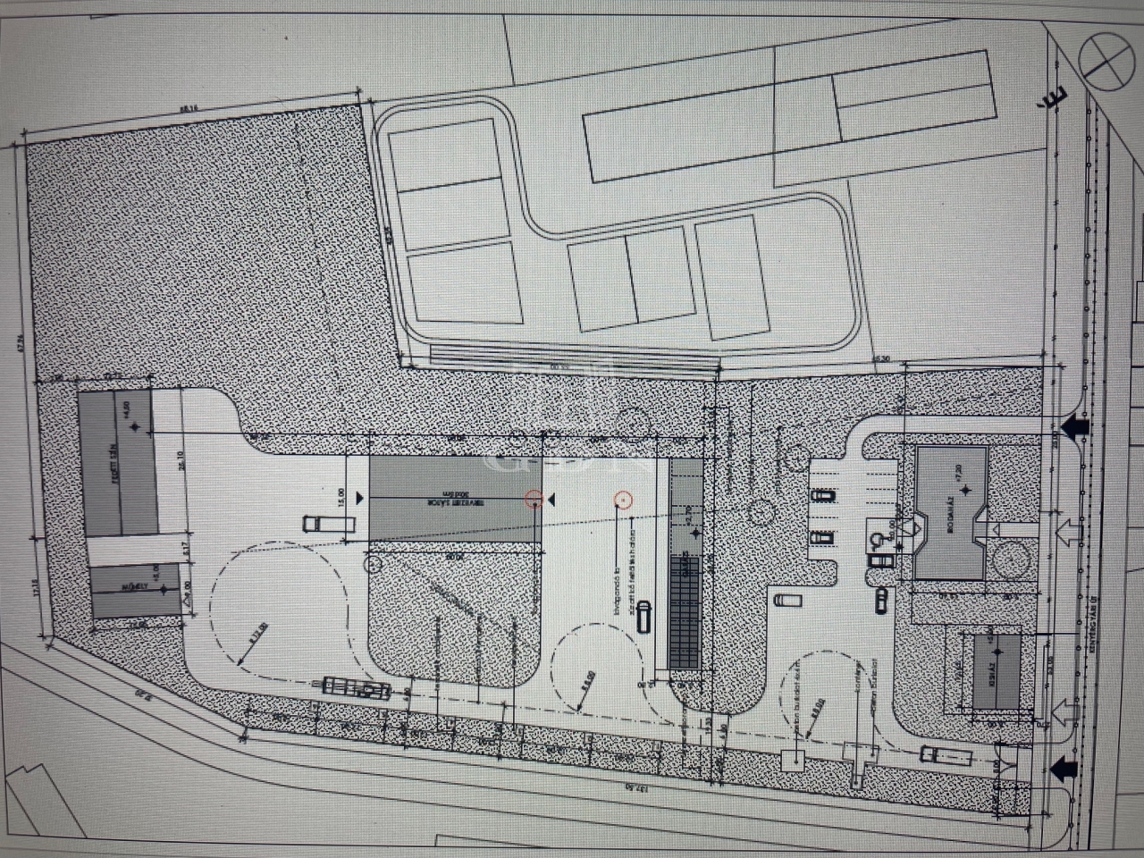 - 5 db zárható vasbeton garázs, közöttük 182 m2 fedett tároló