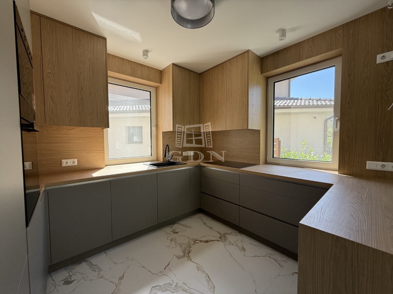 A ház kulcsrakész állapotban kerül átadásra, ennek része a teljesen gépesített, modern konyhabútor, kandalló, nappali bútorzat (TV szekrény, könyvespolc), valamint a háztartási helyiség komplett berendezése.