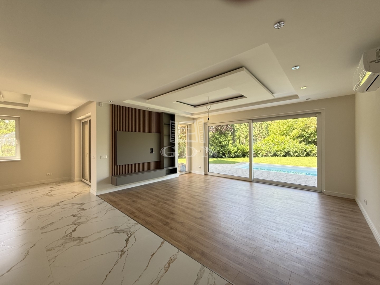 A korszerű, hőszivattyús fűtési-hűtési rendszer minden helyiségben fan-coil egységekkel, szobánként szabályozható hőmérséklettel biztosítja az energiatakarékos és kényelmes klímát. A nyílászárók alumínium motoros redőnyökkel, szúnyoghálókkal, emelő-toló teraszajtóval felszereltek, az épület biztonságát riasztó és kamera rendszer garantálja.