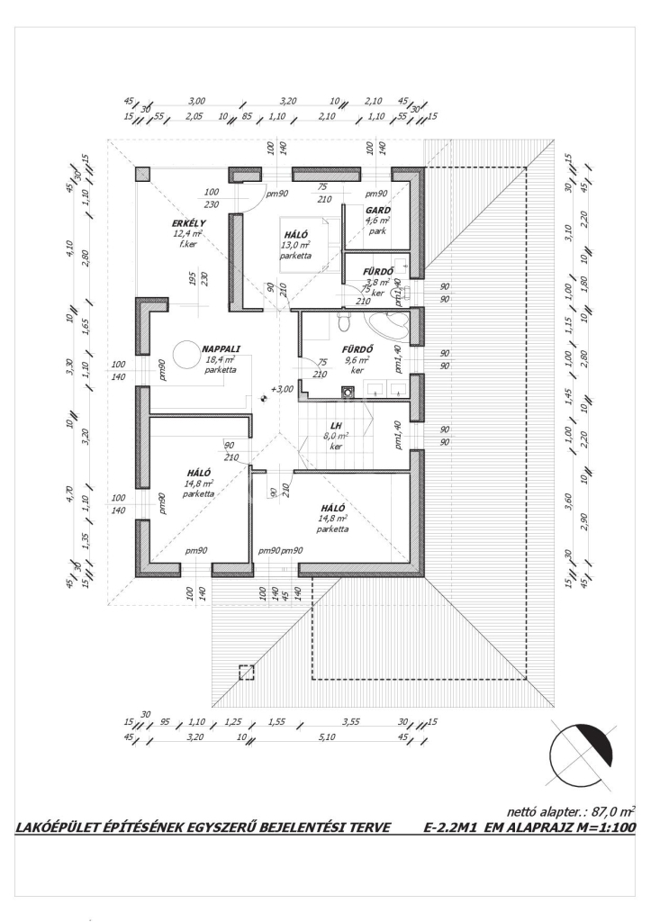 A ház 223m2 hasznos alapterületű, elosztását tekintve: