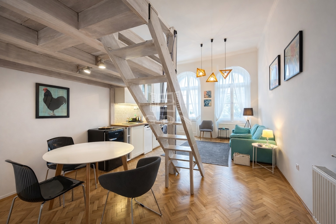 L-004781. Történelmi belváros közelében, műemlék jellegű épületben eladó egy 1. emeleti, 44 nm-es, erkélyes, klimatizált, nappali + 1 szoba + galéria elosztású, 2021-ben felújított téglalakás.