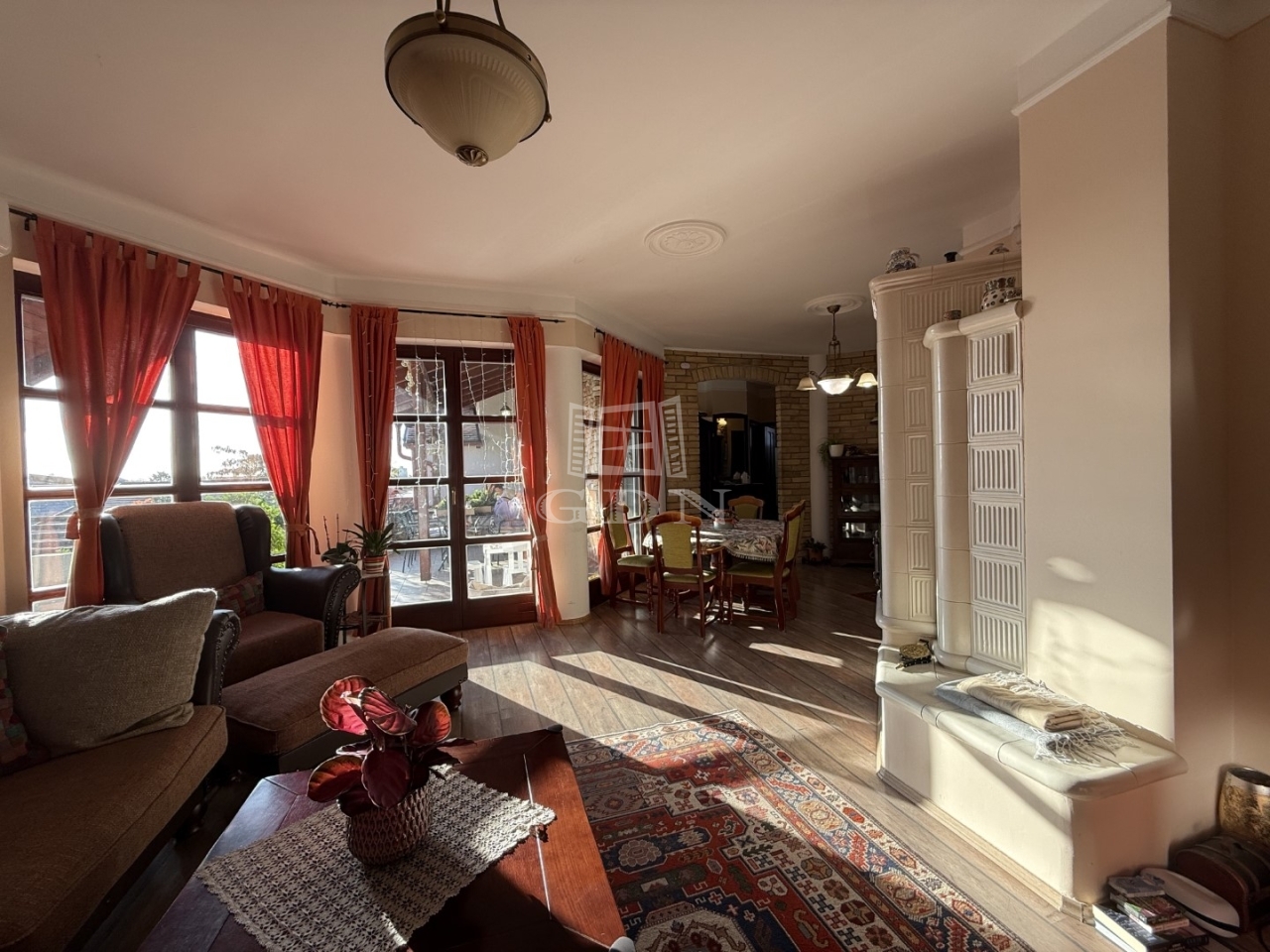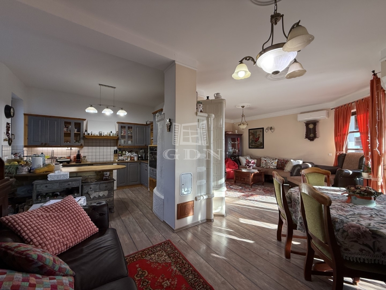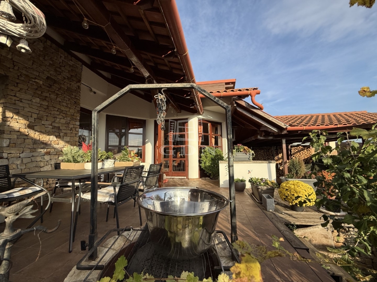 Az egyedi belsőépítészeti megoldások – többek között a konyhában található kemence – az otthonosság és a praktikum különleges összhangját teremtik meg.