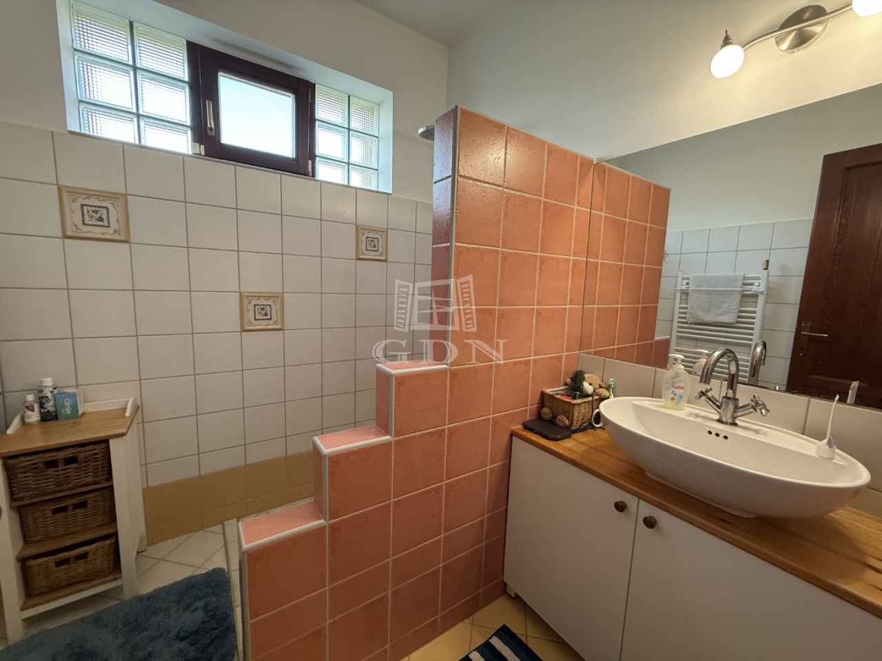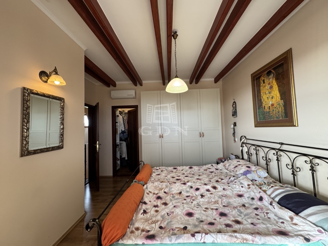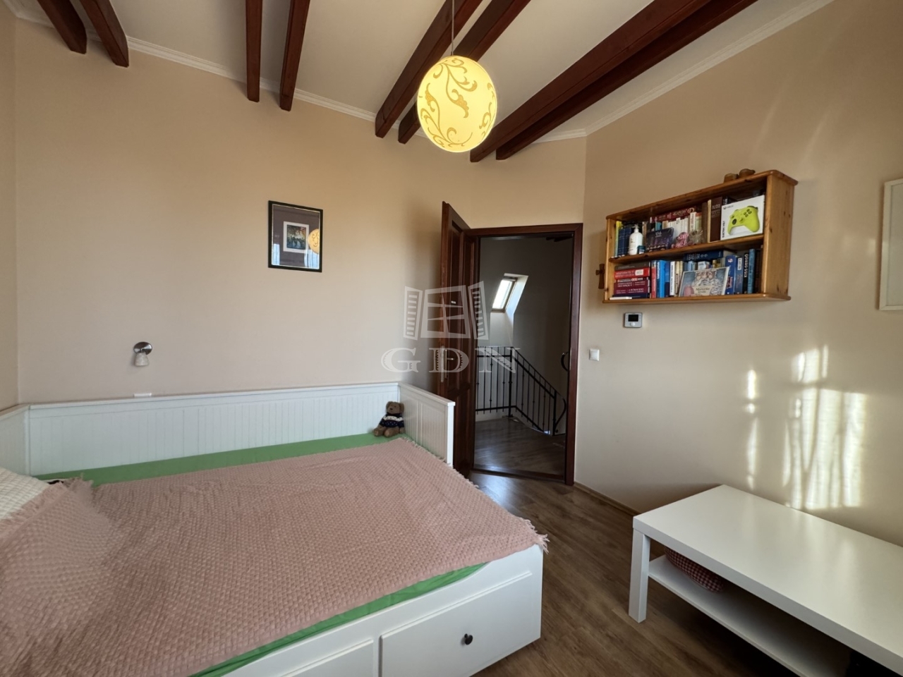 A kétrétegű üvegezésü, hőszigetelt nyílászárók, a magas minőségű hideg- és melegburkolatok, a dizájnos falpanelek, valamint a tetőtérben megjelenő látszógerendák természetes, elegáns megjelenést kölcsönöznek az otthonnak.
